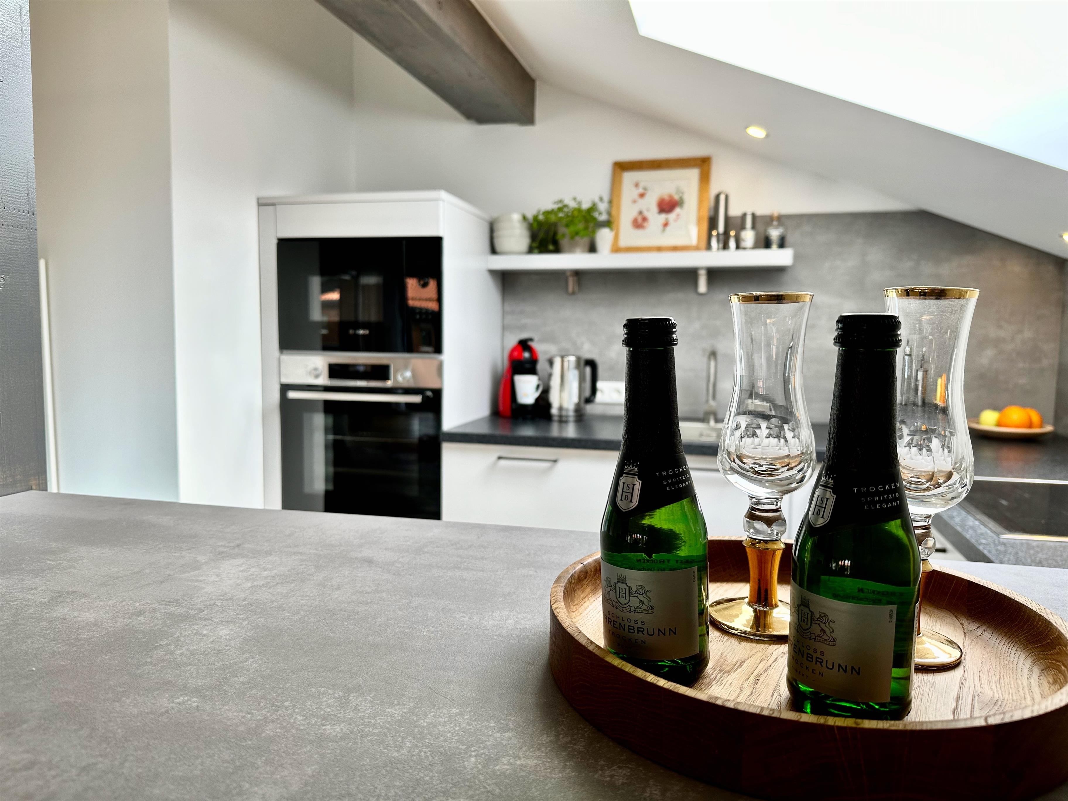 Zwei Zimmer, offene Küche und großer Südwestbalkon.