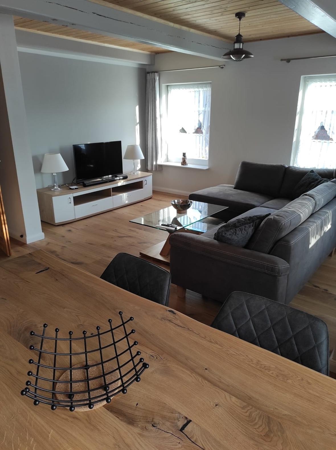 Auf ca. 100 qm finden Sie ein Schlafzimmer mit Ehebett, ein großes Wohnzimmer mit Essecke und einer Schlafcouch, Bad mit Dusche, Badewanne und WC, eine voll ausgestattete Küche, Diele und Abstellraum mit Waschmaschine.