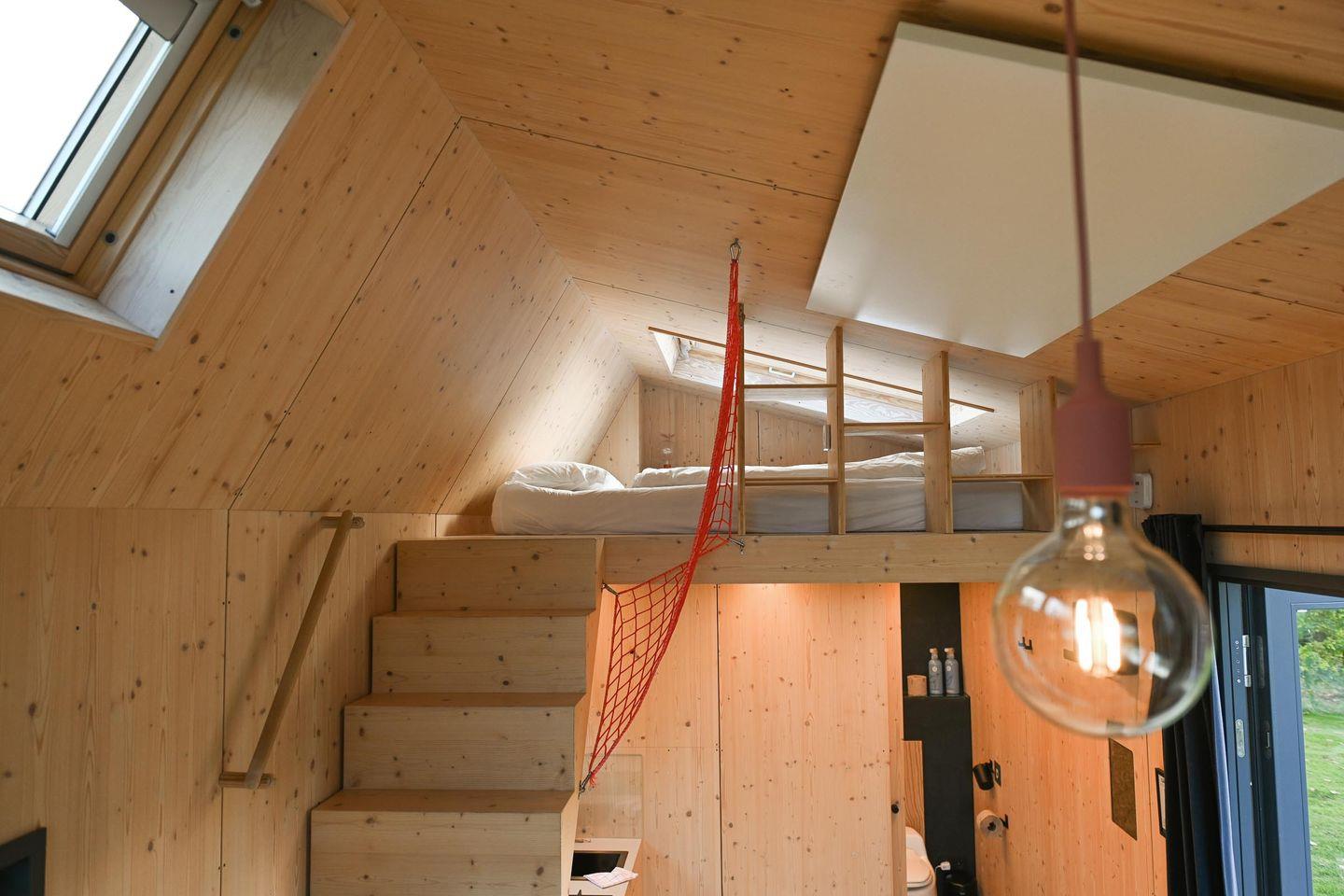 Übernachte in unserem Flagship-Modell für Designliebhaber - dem Green Tiny House Pioneer. Erlebe Nachhaltigkeit von morgen und ein Naturerlebnis der besonderen Art. Unser Vorzeigemodell wird in liebevoller Manufakturarbeit in Schleswig-Holstein hergestellt und bietet auf 22 Quadratmetern Platz für bis zu drei Erwachsene oder zwei Erwachsene und zwei Kinder. Wie jedes unserer kleinen Häuschen ist es als nachhaltige Ferienimmobilie zertifiziert und besteht komplett aus wohngesunden Materialien. Zu den Ausstattungshighlights gehören ein übergroßes Panoramafenster, ein skandinavischer Kaminofen und eine ressourcensparende Astronautendusche. Zusätzlich kompensieren wir alle anfallenden CO2-Emissionen und ermöglichen dir so eine klimaneutrale Übernachtung.