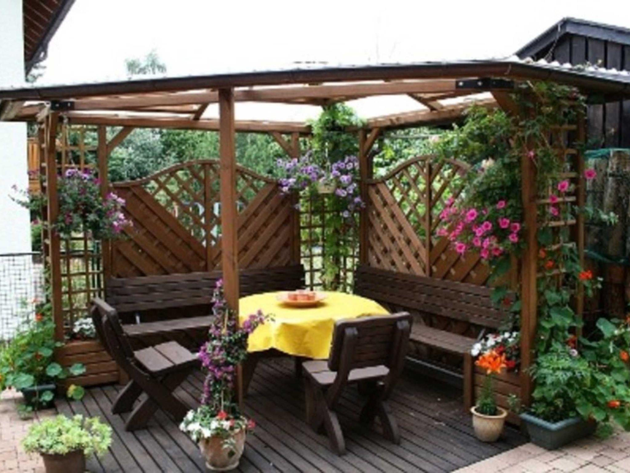 Ein möblierter Grillplatz befindet auf der Terasse mit Zugang zum Garten.