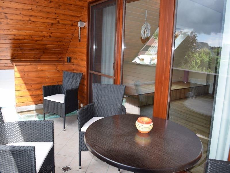 Einrichtung und Ausstattung: Wohnzimmer mit gemütlicher Sitzgruppe, SAT-TV / DVD, WLAN, großer Loggia. Esszimmer mit offener Einbauküche kompl. mit Kühlschrank, E-Herd, Geschirrspüler, Kaffeemaschine, Toaster usw. Bad mit Badewanne, Dusche, Waschtisch, Föhn, Waschmaschine und Trockner. 2 Schlafzimmer mit Doppelbetten und kleiner Sitzgruppe, 1 Schlafzimmer mit Einzelbett. PKW-Stellplatz sowie 1 Unterstand für Fahrräder.