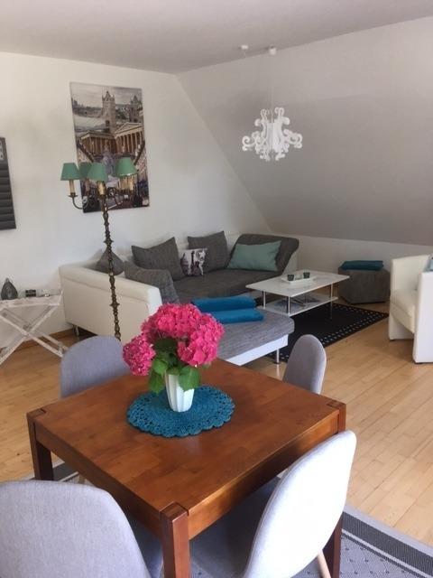 Schöne großzügige Nichtraucher-Ferienwohnung unweit zahlreicher Freizeitmöglichkeiten für maximal drei Erwachsene und ein Kind oder zwei Erwachsene und zwei Kinder (kleines Zimmer mit Beistellbett vorhanden). Fernseher und DVD-Player vorhanden. Ca. 8m2 großer Balkon, ruhige Lage. Direkt am Haus befinden sich ein PKW-Stellplatz und ein Fahrradunterstand.