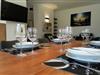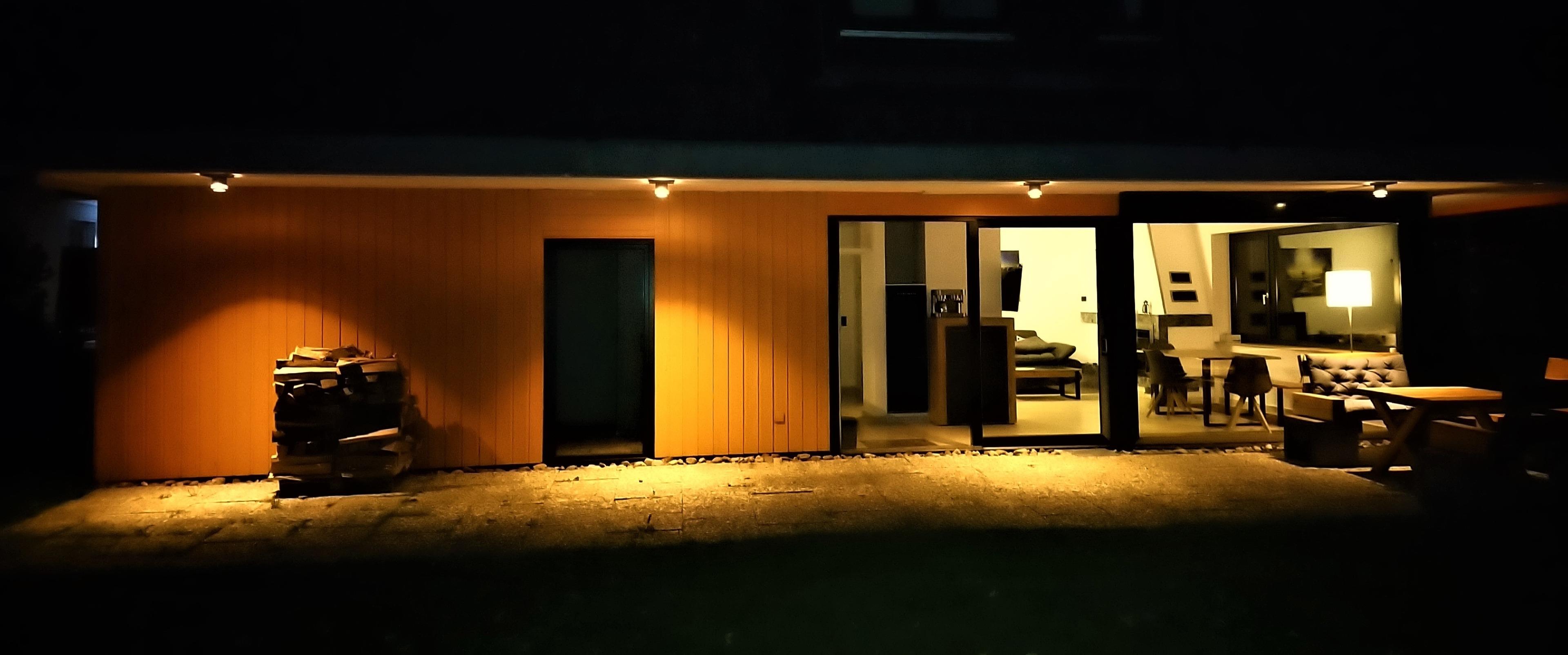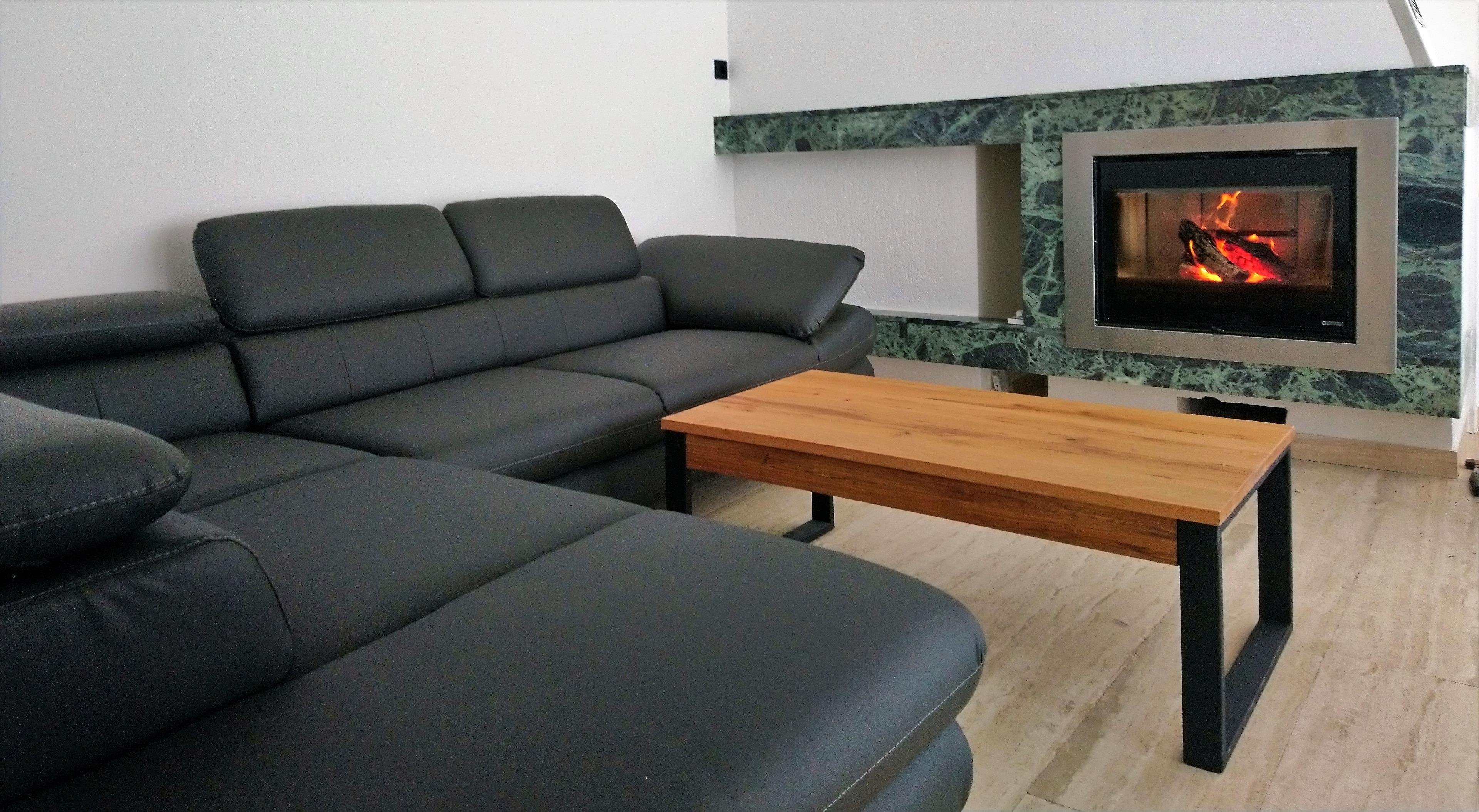 Der Garten, sowie die Terrasse ist ebenerdig über Panorama Glastüren begeh- und nutzbar. Der Wohnbereich ist mit Natursteinboden ausgestattet.