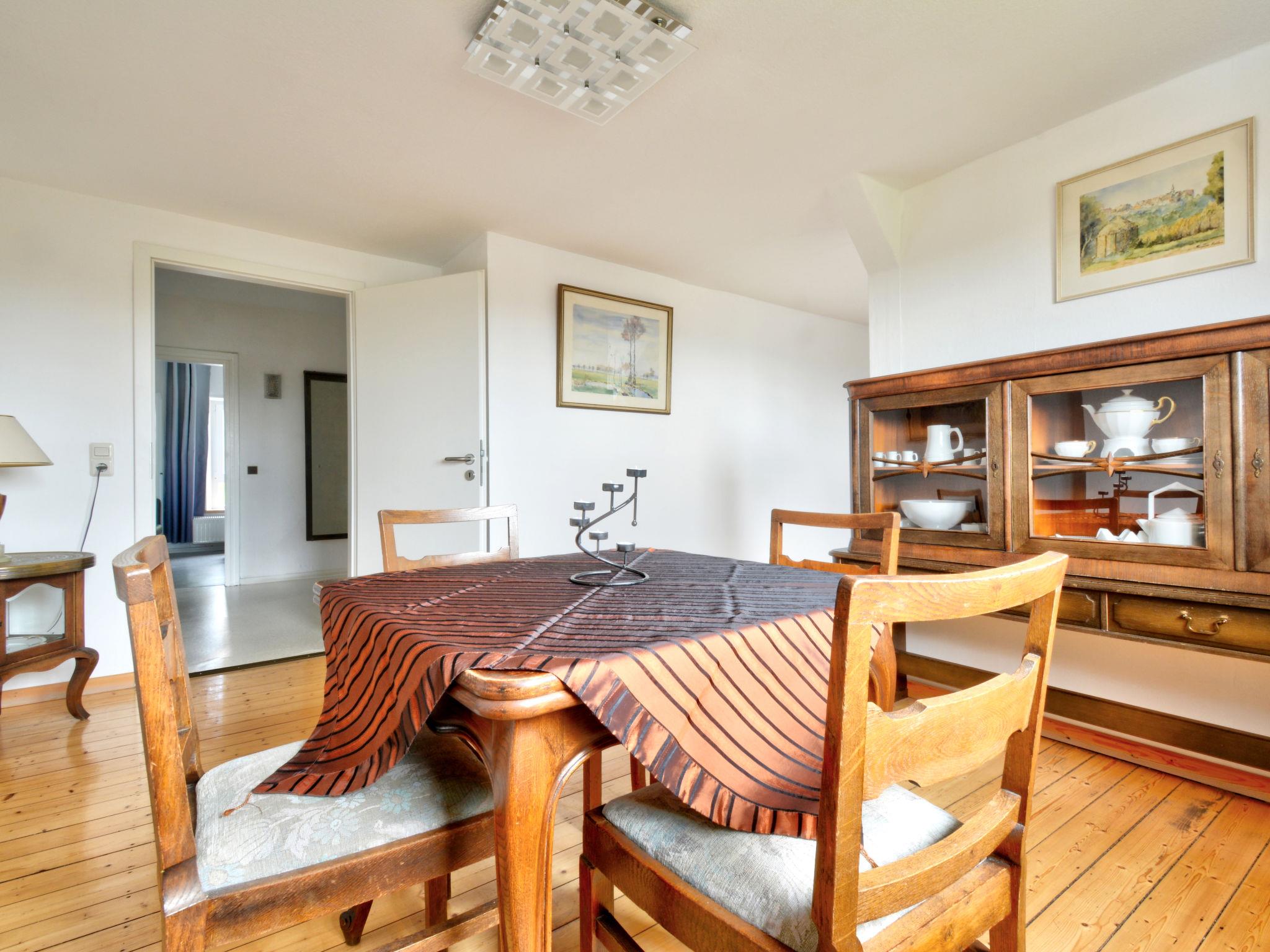 "Am Brauamt", 4-room apartment 86 m2, on the top floor. Partly with sloping ceilings, renovated in 2021, stylish and cosy furnishings: living room 20 m2 with satellite TV (flat screen). Dining room 15 m2. 1 room 14 m2 with 1 double bed (2 x 90 cm, length 200 cm). 1 room 10 m2 with 2 beds (90 cm, length 200 cm). Open kitchen 10 m2 (oven, 4 ceramic glass hob hotplates, microwave, electric coffee machine). Bath/shower/WC. Wooden floors. Small balcony 5 m2. Balcony furniture. Very beautiful panoramic view of the mountains and the city. Facilities: Internet (WiFi, free). Please note: non-smokers only. Smoke alarm, fire extinguisher. The balcony is located on the ground floor (access via staircase).