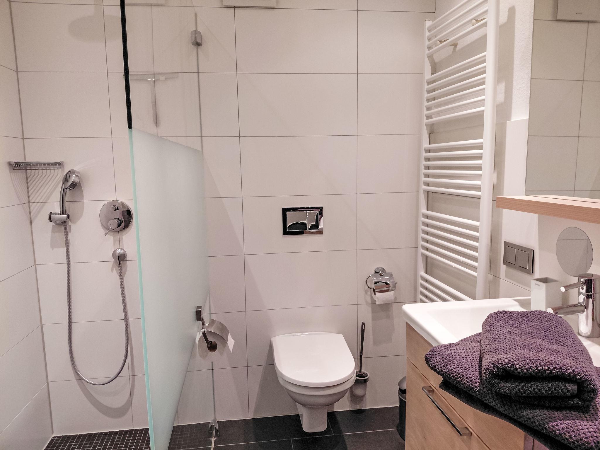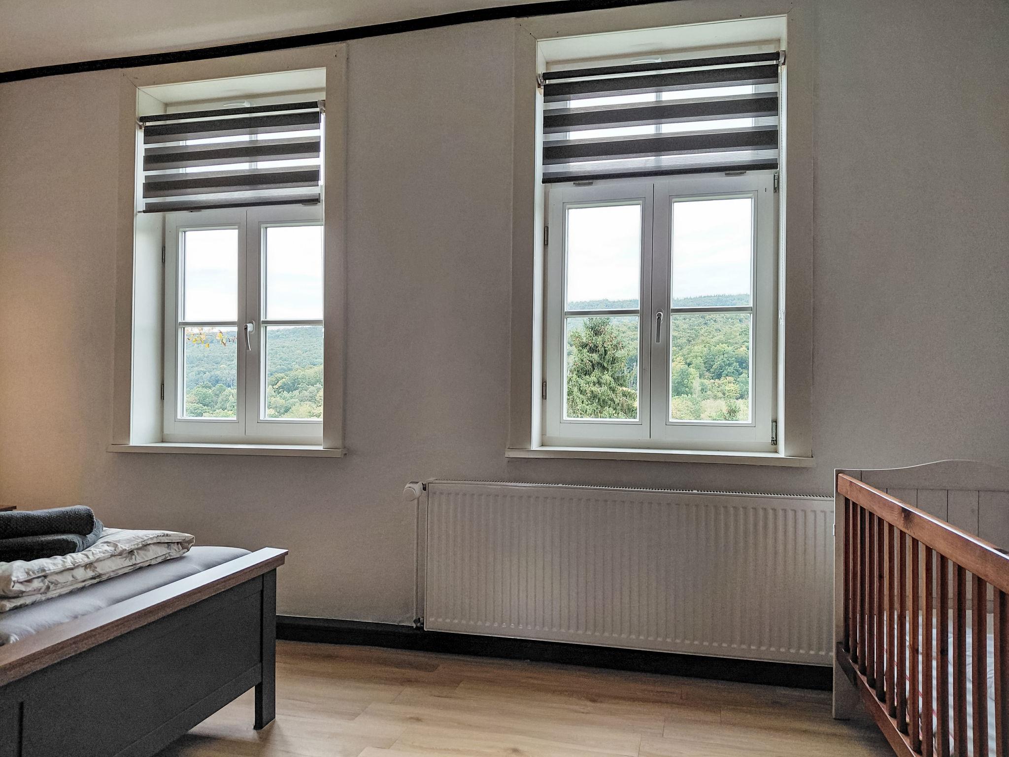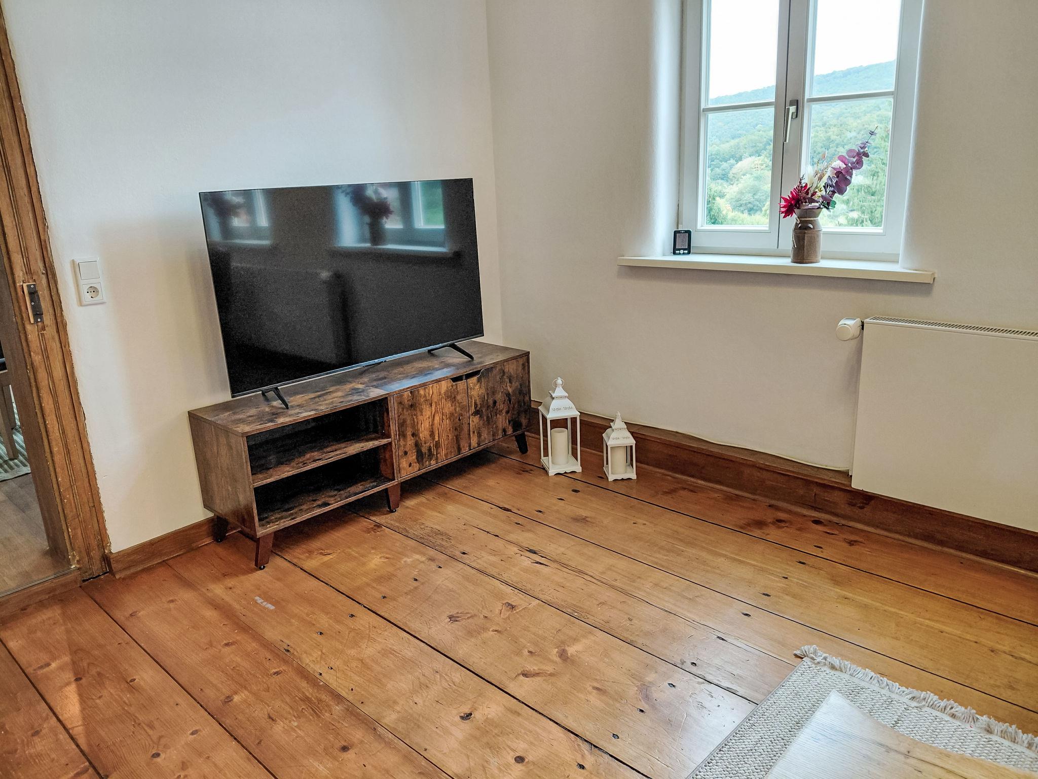3-room apartment 85 m2, on the ground floor. Rustic and cosy furnishings: living/dining room with dining table and digital TV. 1 room with 1 double bed (180 cm, length 200 cm). 1 small room, window onto the living room with 2 beds (80 cm, length 200 cm). Kitchen (oven, dishwasher, 4 induction hot plates, toaster, kettle, microwave, freezer, electric coffee machine). Shower/WC. Gas heating. View of the countryside and the forest. Facilities: children's high chair, baby cot. Internet (WiFi, free). Please note: non-smokers only. Smoke alarm, fire extinguisher.