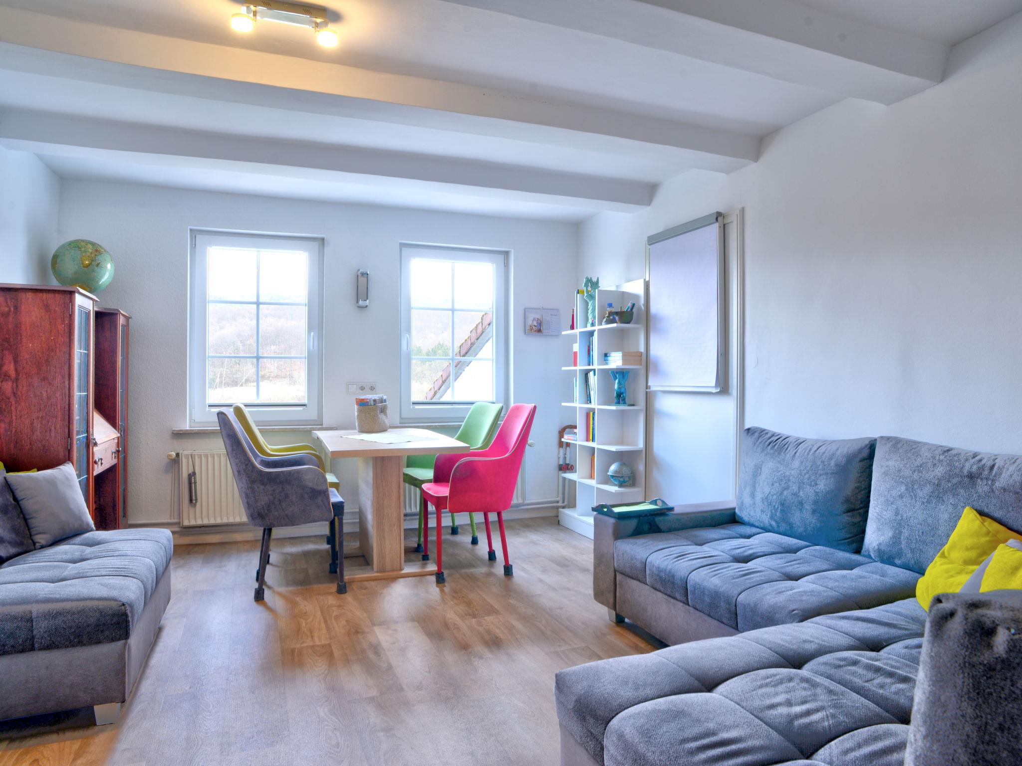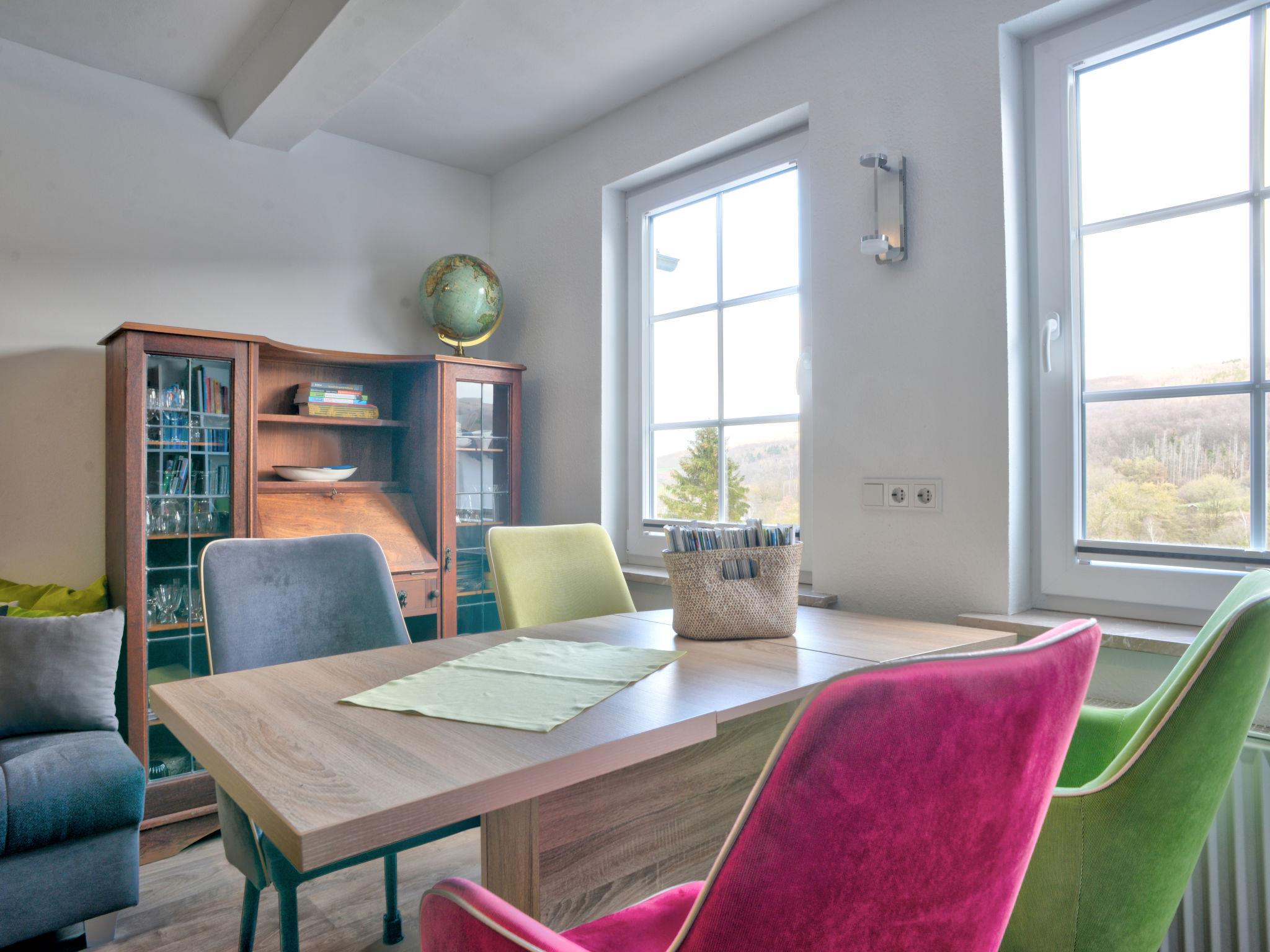 Historical 2-family house, built in 1560. In the centre of Schwalenberg, excellent location: right in the centre but still quiet, in the heart of the city, traffic calmed area, 100 m from the stream. For shared use: natural garden 500 m2, meadow 500 m2, orchard 500 m2, courtyard. Barbecue, public parking on the road. Shop, grocery 4 km, supermarket 5 km, restaurant 200 m, bakery 400 m, café 4 km, bus stop "Steinheimer Strasse" 200 m, railway station "Steinheim" 6 km, outdoor swimming pool 6 km. Walking paths from the house 100 m, children's playground 300 m. Nearby attractions: Externsteine 26 km, Hermannsdenkmal 27 km, Welterbe Corvey 28 km. Well-known lakes can easily be reached: Schiedersee 6 km. Please note: car not advisable. Loading and unloading of baggage is possible at the holiday house. The owner lives in the same residence. Natural garden with grapevines. The owner has his own vineyard and runs a wine trade. In the yard in front of the house there is a paved forecourt (100 m2) with a small public restaurant for tasting wines from mainly German countries. Wine tastings, hikes and singing together can be booked on request and for a fee, as well as an in-house laundry service (washing / drying / ironing).