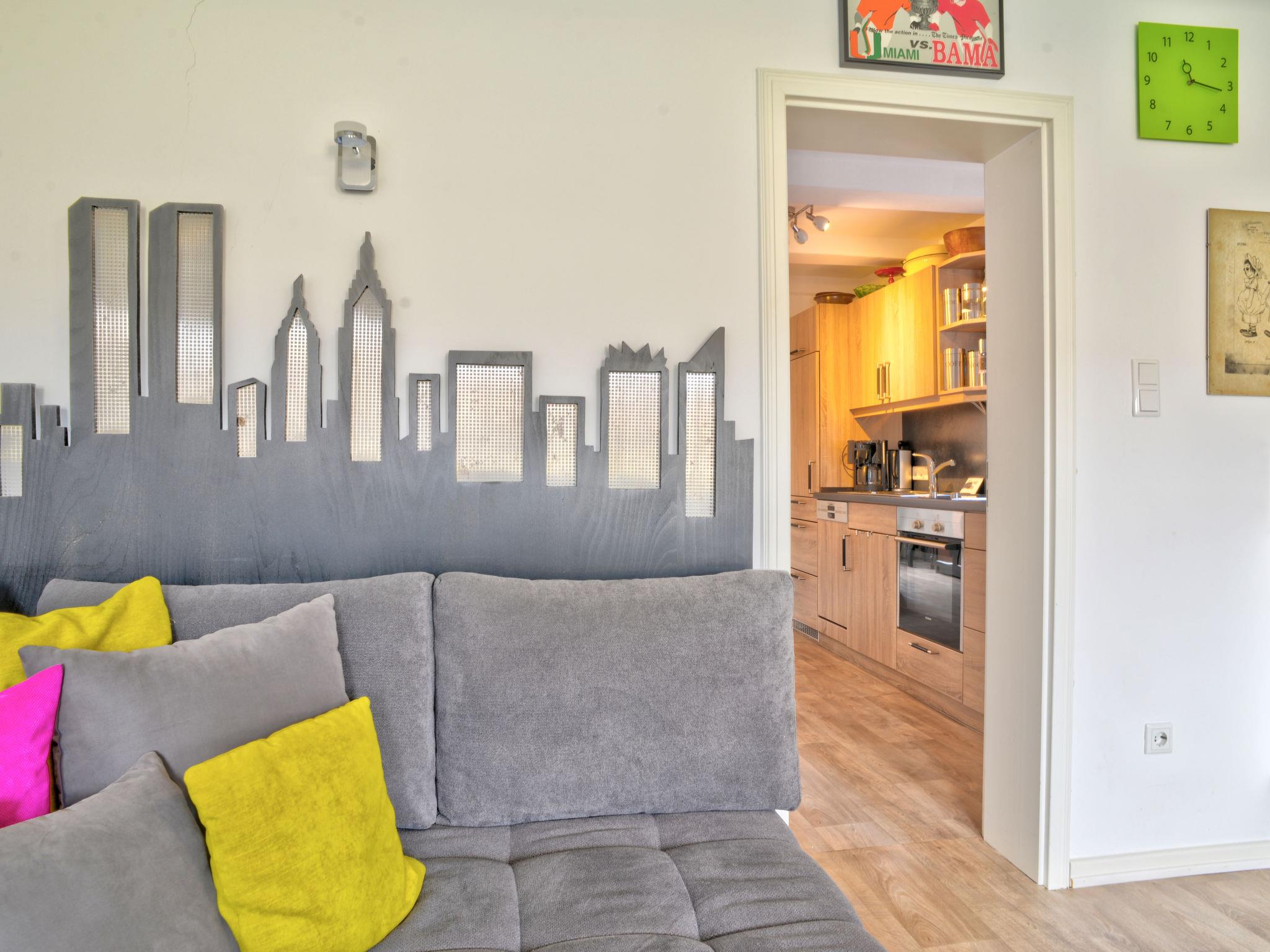 "Phileas", 2-room apartment 46 m2 on 1st floor. Tasteful furnishings: living/dining room 18 m2 with satellite TV (flat screen), CD-player and hi-fi system. 1 room 15 m2 with 1 double bed (180 cm, length 200 cm). Kitchen 9 m2 (oven, dishwasher, 4 ceramic glass hob hotplates, toaster, kettle, electric coffee machine). Shower/WC. Gas heating. Facilities: iron, hair dryer. Internet (WiFi, free). Please note: non-smokers only. Smoke alarm, fire extinguisher. The bookable additional room (16 m2, extra) for 2 people is on the same floor and has 1 double bed (150 cm, length 200 cm), satellite TV (flat screen) and a seat as well as a bathroom / toilet (5 m2). A baby and / or toddler as an additional person is not allowed.