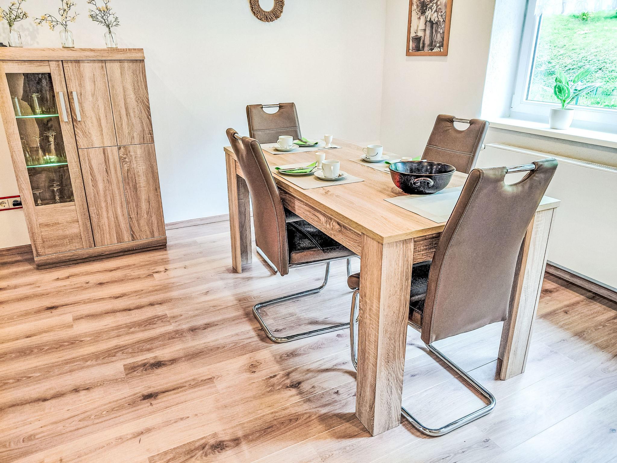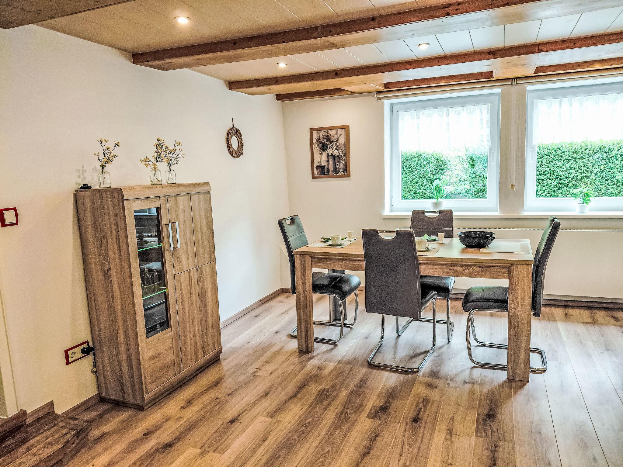 Semi-detached house, renovated in 2025. 200 m from the centre of Schwalenberg, in a central, quiet, sunny position on a slope. Public parking. Supermarket 500 m, restaurant 150 m, bus stop 500 m, railway station "Schieder-Schwalenberg" 5 km, outdoor swimming pool 5 km, indoor swimming pool 15 km. Golf course (18 hole) 14 km, tennis 5 km, children's playground 200 m. Nearby attractions: Tierpark Bad Pyrmont 14 km, Hermannsdenkmal 32 km. Well-known lakes can easily be reached: Schiedersee 6 km. Please note: Loading and unloading of baggage is possible at the holiday house.
