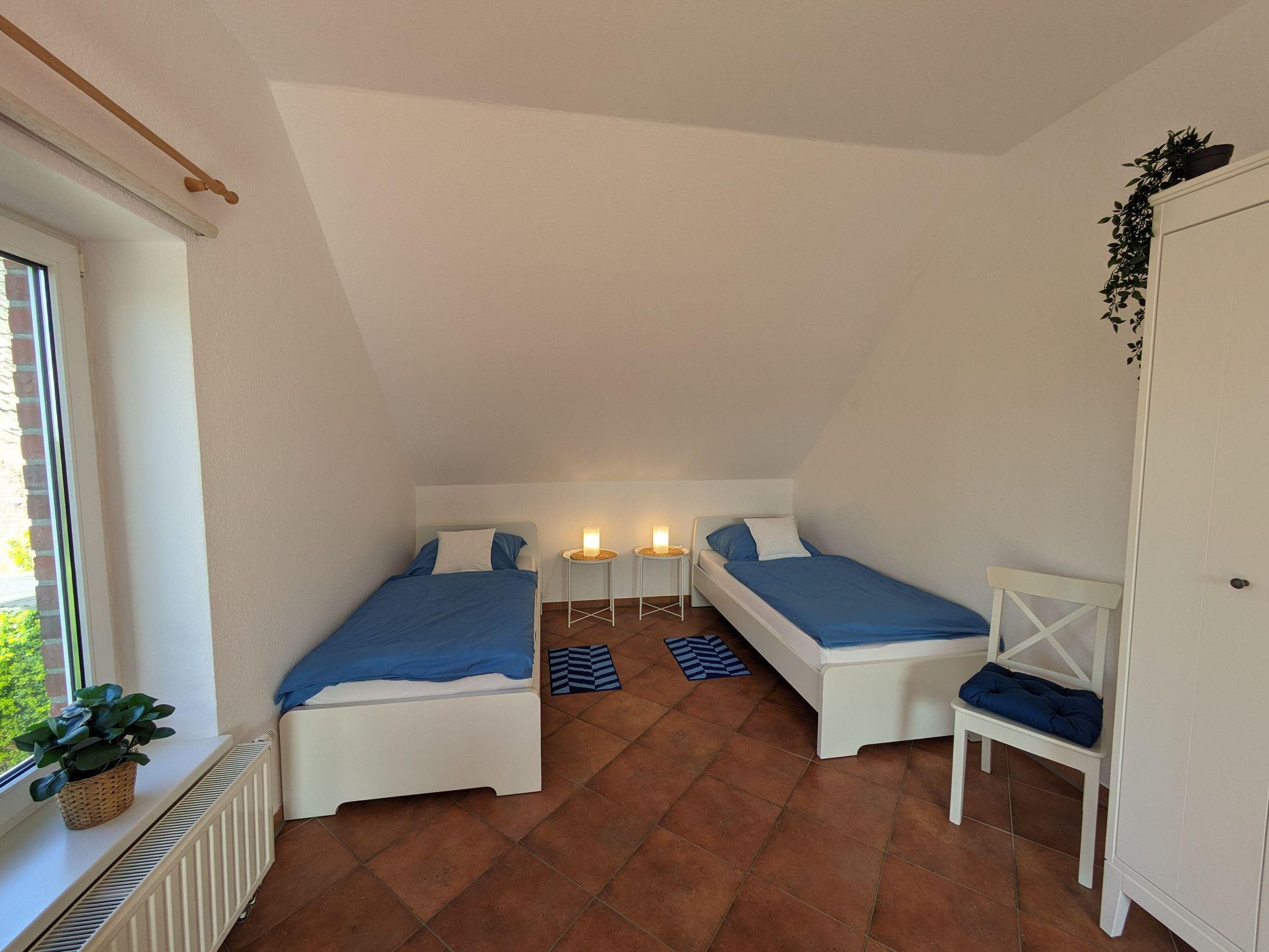 Die 76m² große Kastanienwohnung ist in der ersten Etage und bietet einen tollen Ausblick in den großen Bauerngarten und die Weiten der Marsch. Die Wohnung umfasst einen geräumigen Wohnbereich mit voll ausgestatteter Küche, 2 Schlafzimmer und ein großes Badezimmer mit Dusche. Im Schlafzimmer 1 gibt es ein Ehebett (180x200). Im Schalfzimmer 2 stehen 2 Einzelbetten (90x200) und ein Schlafsofa (130x190), so dass die Wohnung mit bis zu 6 Personen bewohnt werden kann. Im Schalfzimmer 2 haben wir auch einen kleinen Arbeitsplatz geschaffen. Die Kastanienwohnung wurde im März 2024 komplett renoviert und neu eingerichtet.