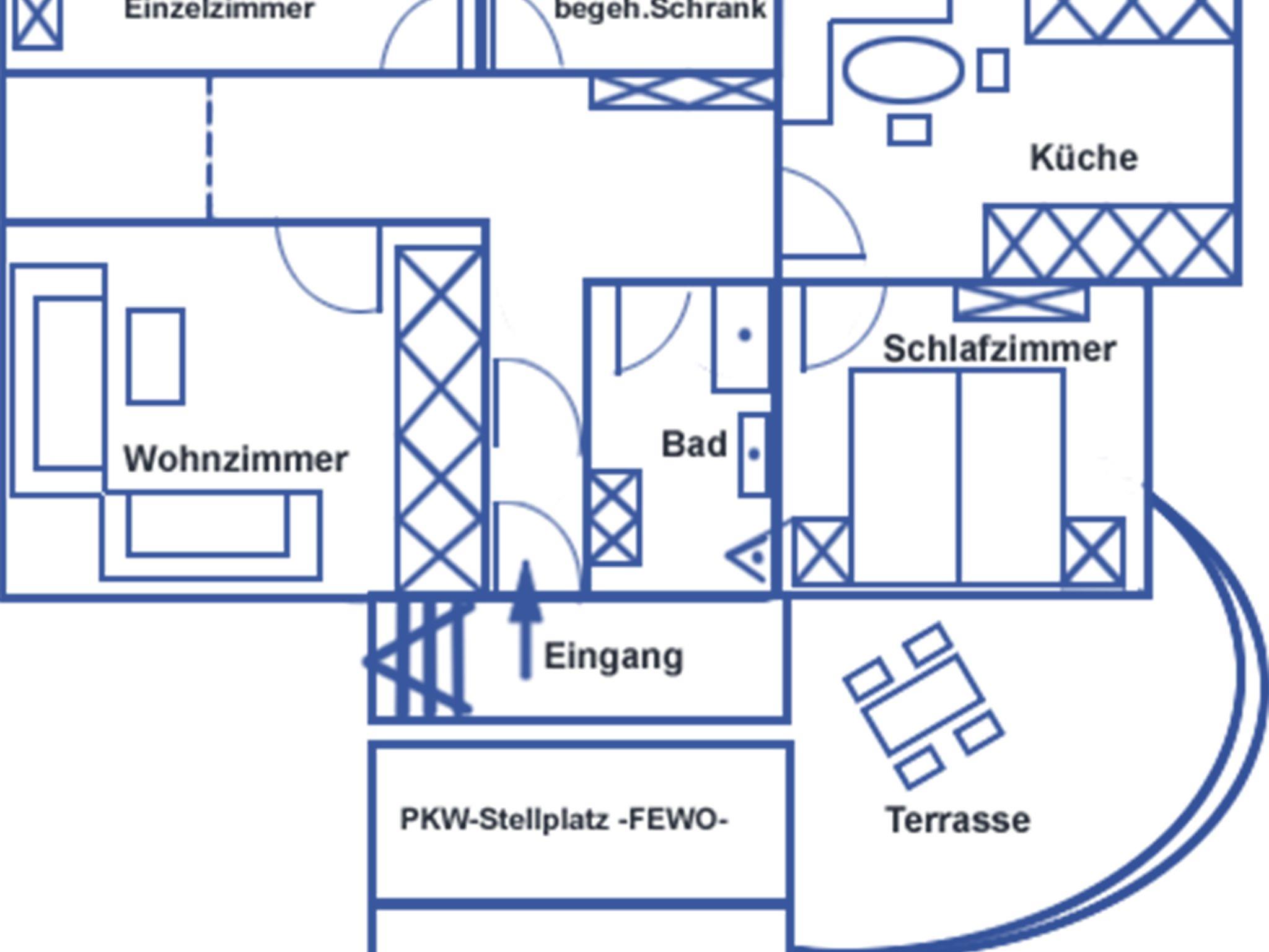 Die Wohnung ist mit allem ausgestattet was Sie für Ihren täglichen Gebrauch benötigen. Sie hat einen separaten Eingang, eine Terrasse und einen PKW-Stellplatz.