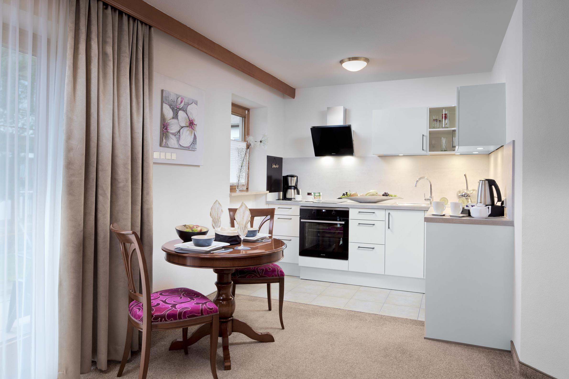Ein elegantes Appartement (ca. 45m²) in unserem Haus Marie mit besonderem Charme eignet sich perfekt für eine Pärchen-Auszeit. Eine integrierte Wohnküche, ein schönes Badezimmer mit Dusche/WC und das separate Schlafzimmer bieten einen idealen Ort zum Wohlfühlen. Das Appartement mit Balkon befindet sich im 1.OG.