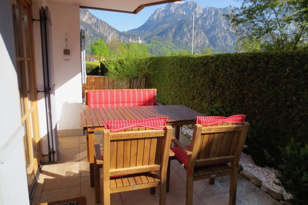 Die 63qm Ferienwohnung für 2 Personen im Erdgeschoss mit Blick von der Terrasse auf das Schloss Neuschwanstein ist besonders hochwertig und mit Liebe zum Detail ausgestattet..