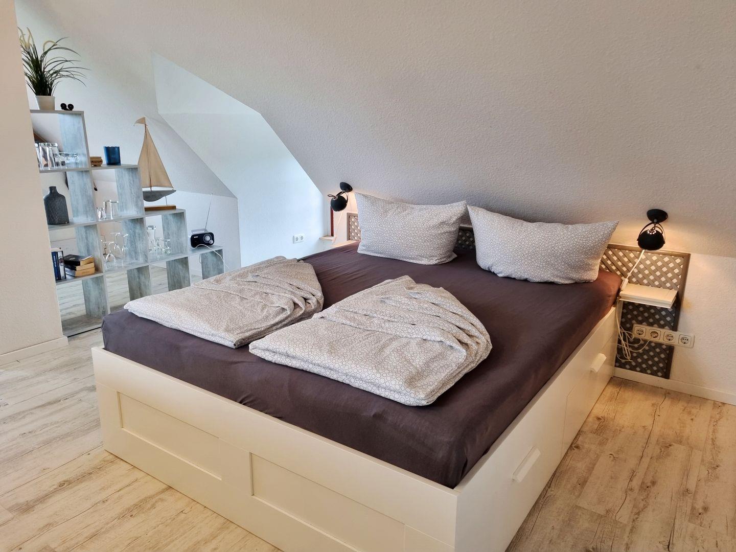 Schlafbereich: Doppelbett / Schrankabseite