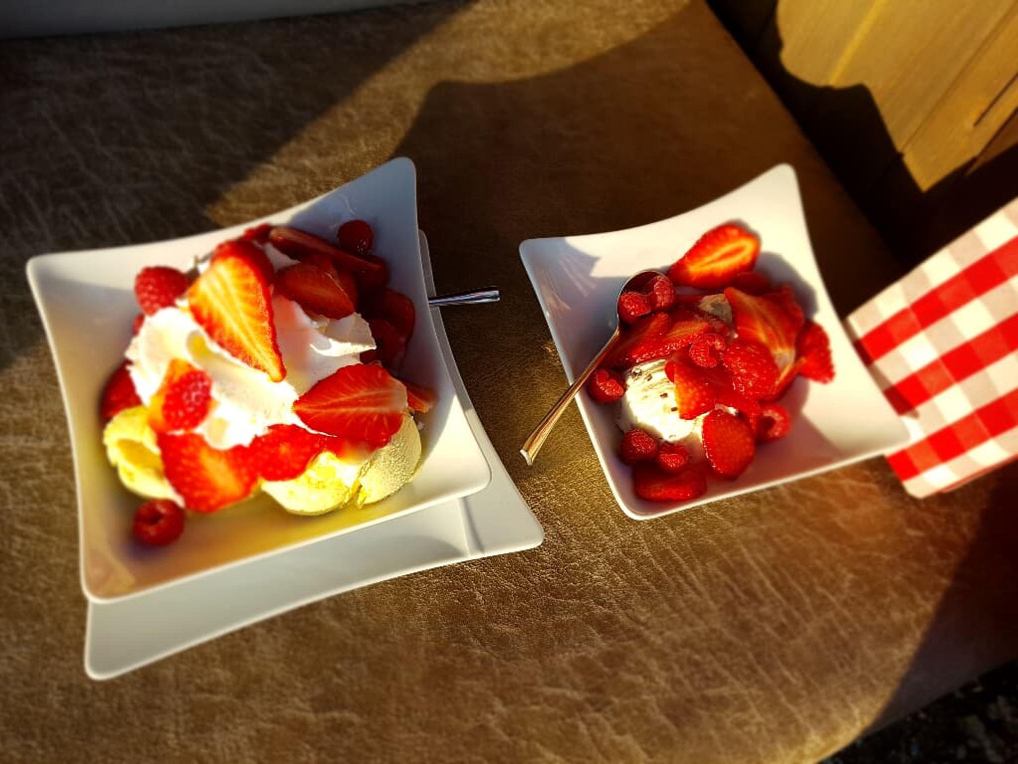 1 Schlafzimmer mit hochwertigen Tempur-Matratzen, incl. bezogener Betten, Flachbildfernseher. Ein Bad mit Regendusche, Schwalbrause, Whirlpool, Sauna, Bademäntel, Handtücher, Fön, und Fernseher. Küche mit Backofen, Induktionskochfeld mit Dunstabzug Bora, Kühlschrank, Gefrierschrank, Spülmaschine, Senseo-Pad-Maschine, Toaster, Mikrowelle, Eierkocher, Wasserkocher, Küchenwaage, Dunstabzug, Tresor, Küchentücher und Spülmittel. Wohnraum mit Kuschelecke mit Kaminofen und Flachbildfernseher, Eine große Veranda mit Glasdach und Markise, Sonneninsel auf der Terrasse, Weber-Grill.