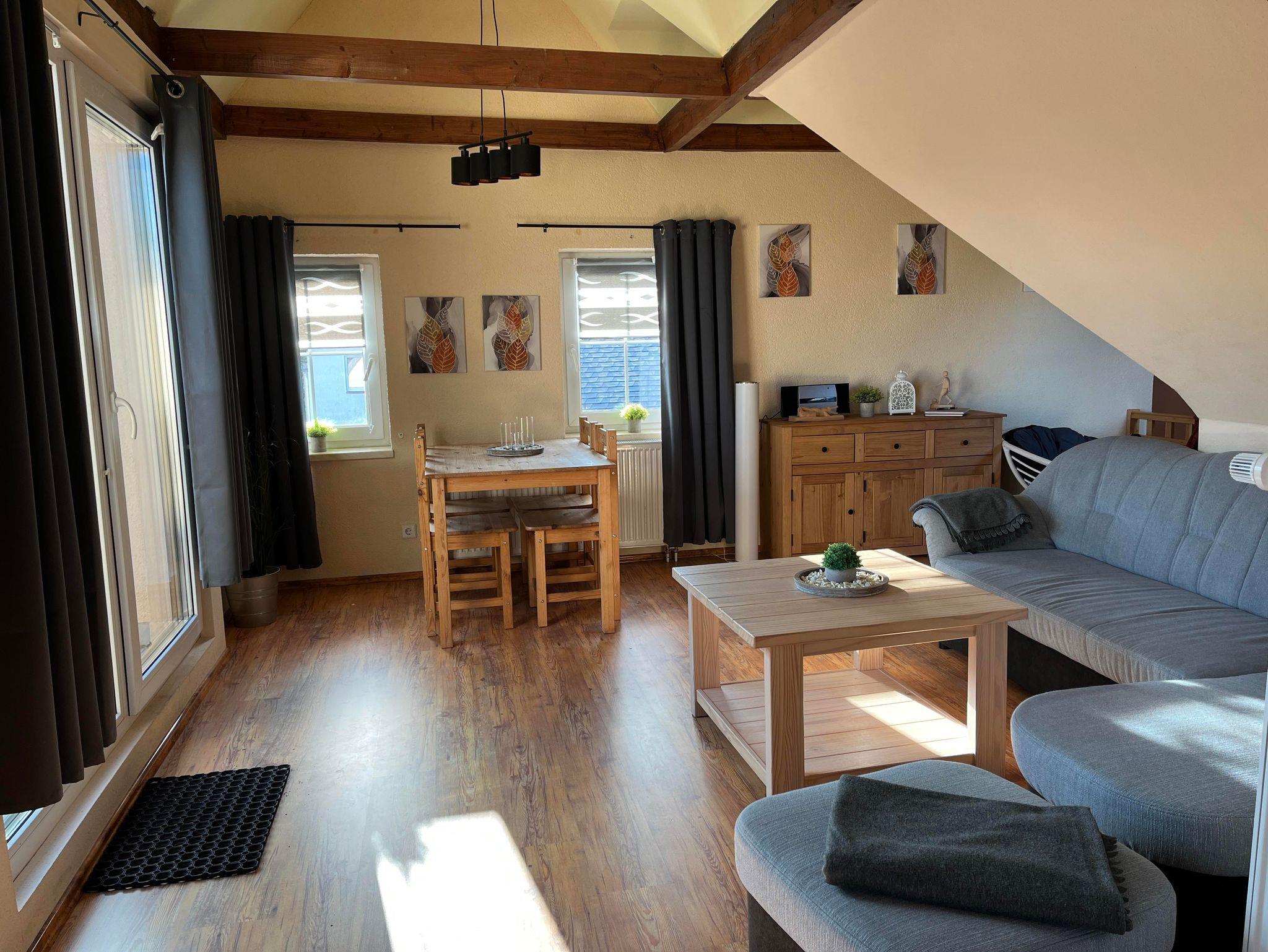 Die in neutralen Farben gestaltete 80m² große Ferienwohnung ist wohnlich eingerichtet und besteht aus 2 Schlafzimmern, einem Wohn- und Essbereich mit offenem Schnitt und einem großen Balkon.