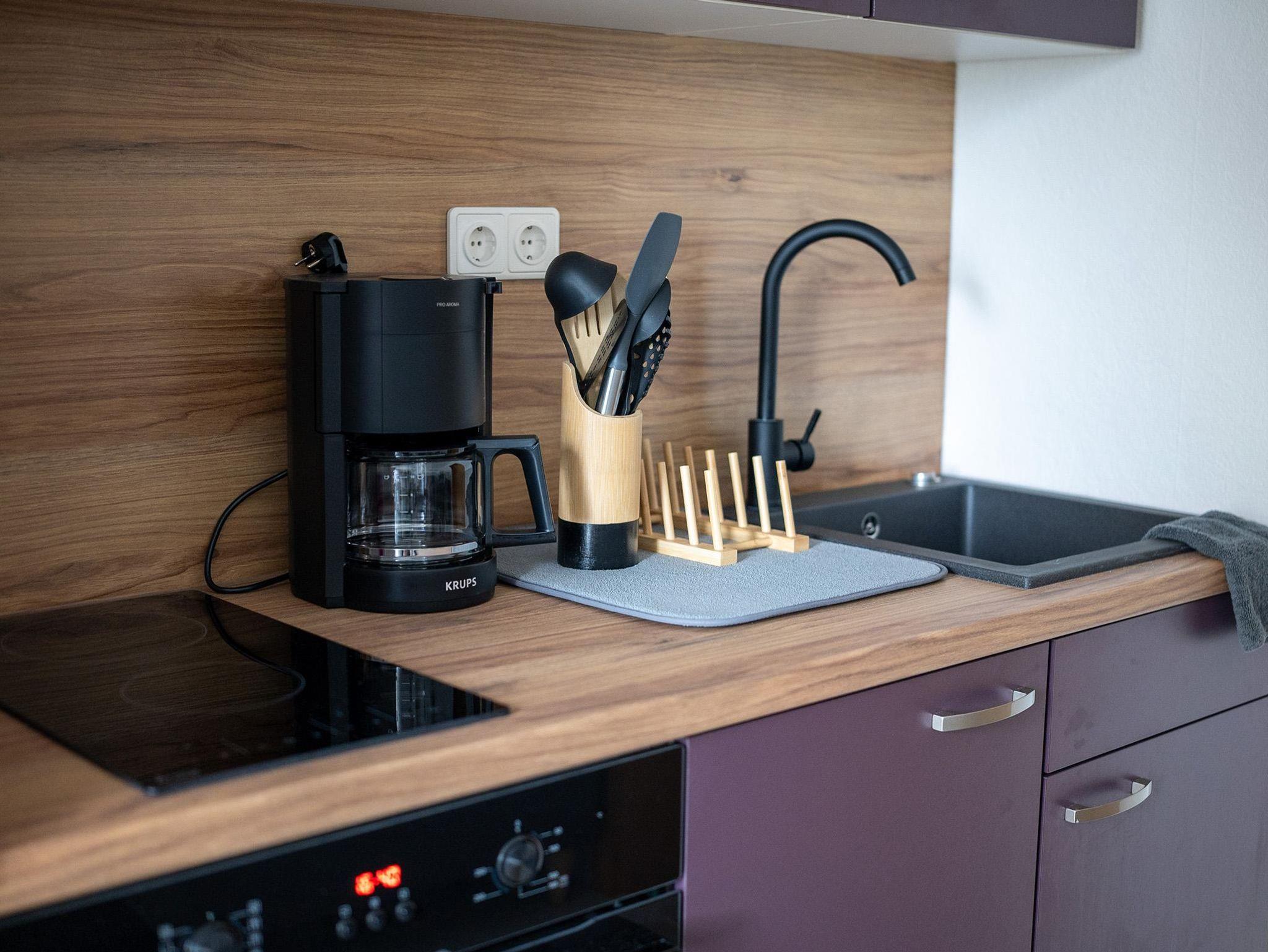 Die Wohnung verfügt über einen separaten Eingang, von dem aus Sie direkt in das Schlafzimmer, das Badezimmer sowie den Wohnbereich mit integrierter Küchenzeile gelangen.