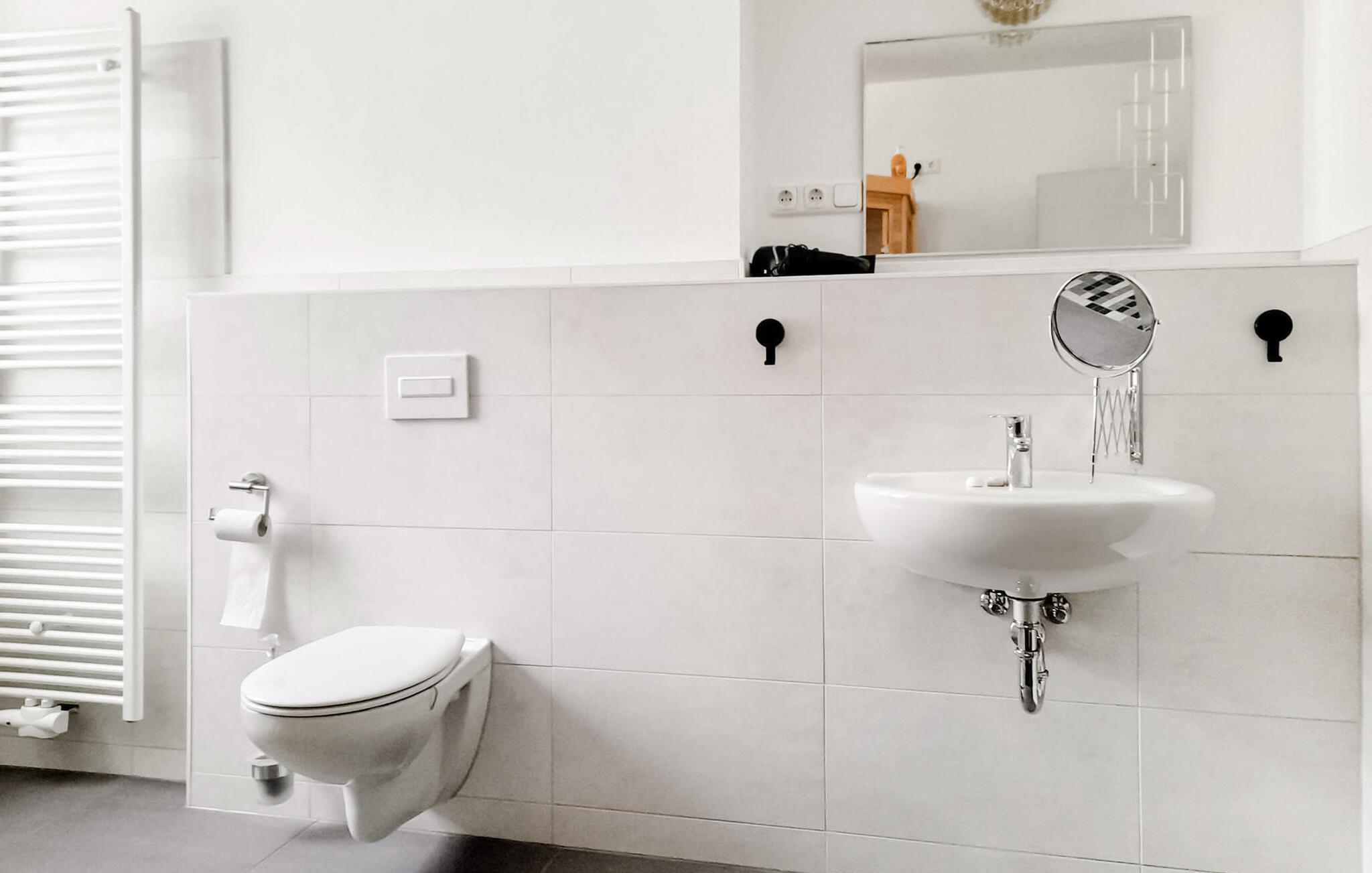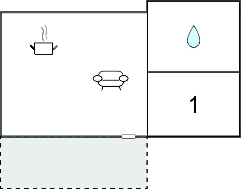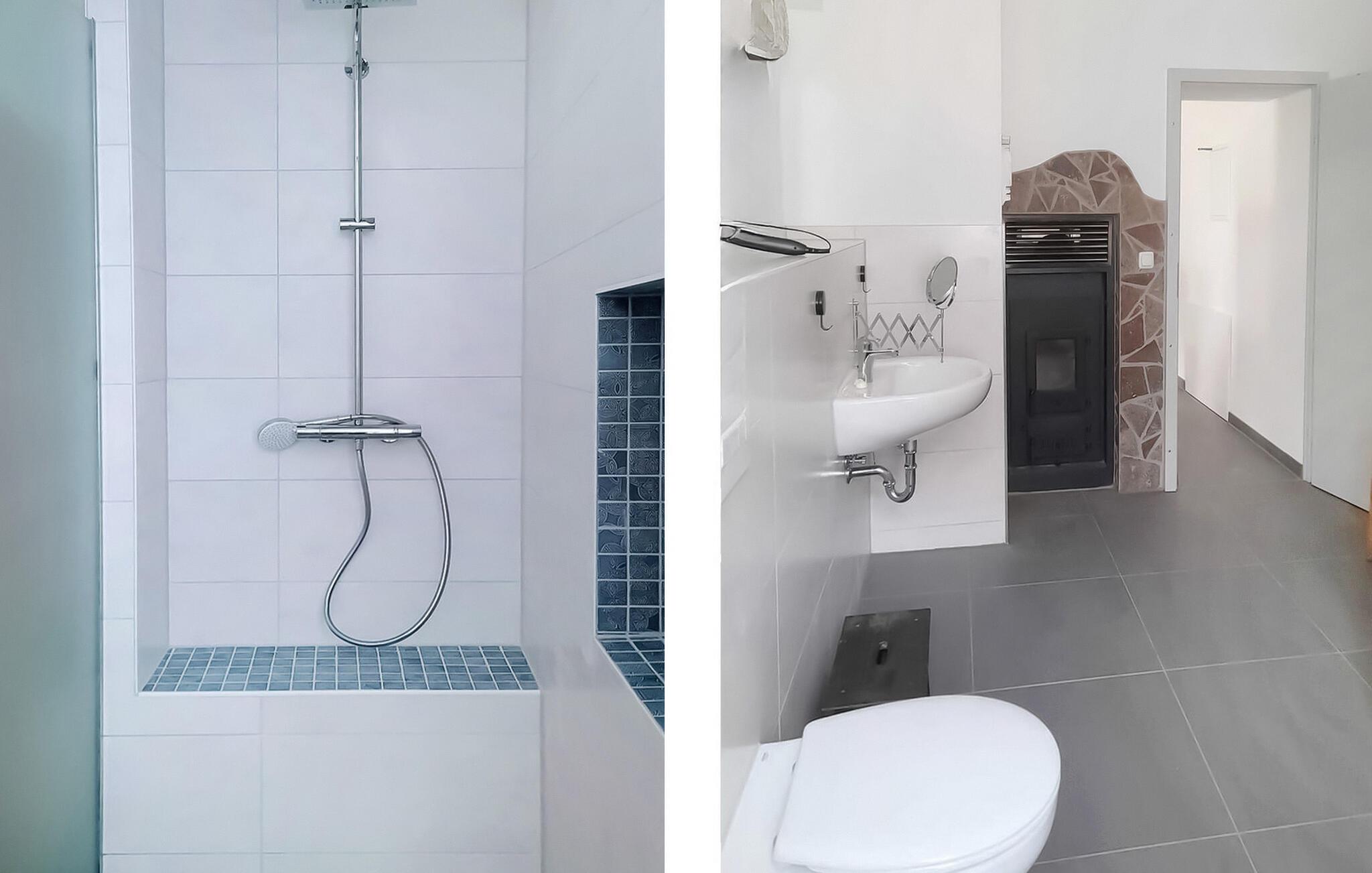 Badeværelse (nr. 1) - WC. Varmt og koldt vand. Bruser