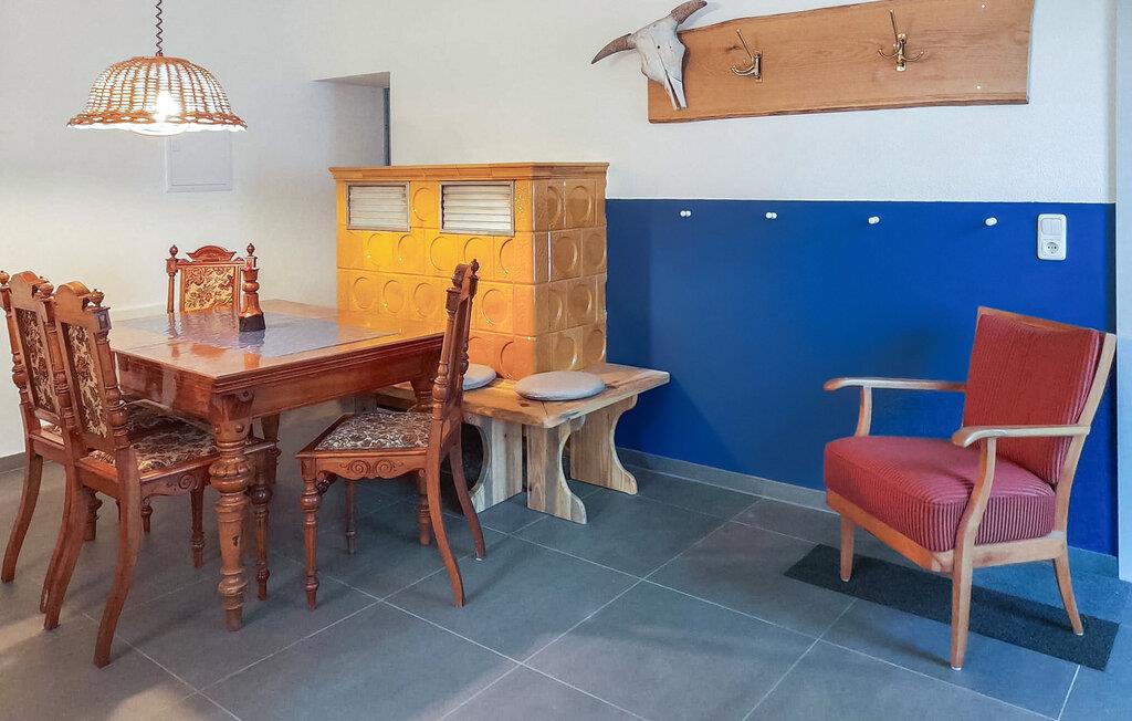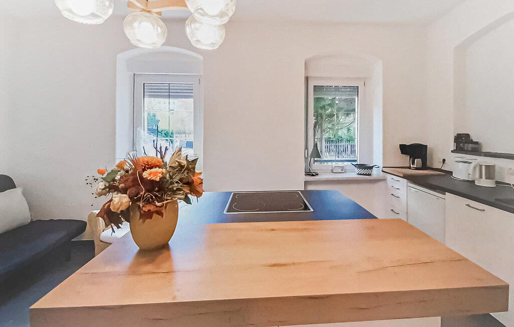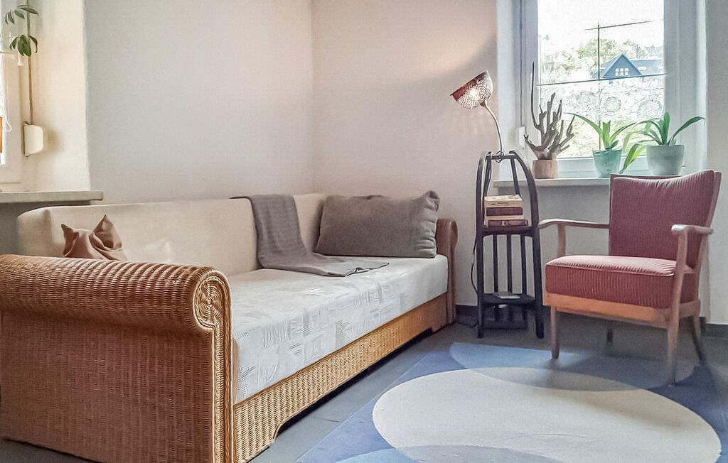 Ferielejligheden til to til højst fire personer ligger separat i stueetagen i en beboelsesejendom i udkanten af byen. Ejeren driver en lille gård med heste og høns. Friske æg til morgenmad kan bestilles efter anmodning. Bageriet ligger kun få skridt væk. Lejligheden blev totalrenoveret og nyindrettet i 2020 (første indflytning i 2021). Den er udstyret med køkken-alrum (sovesofa, lænestol, spisebord, fladskærms-tv, radio, el-komfur, ovn, køleskab med fryser, opvaskemaskine), soveværelse (2 x enkeltsenge) og badeværelse med bad/toilet og en infrarød kabine. Lejligheden er centralvarme, men har også en gammel brugbar kakkelovn. Der er en separat havegrund med møbleret terrasse og grillfaciliteter, parkeringsplads og opbevaringsplads til cykler eller skiudstyr. Der er også gratis trådløs internetadgang. Slutrengøring samt vand- og energiomkostninger er inkluderet i den samlede pris. Du kan medbringe dit eget sengelinned og håndklæder eller leje dem på stedet. Et kæledyr er tilladt i denne ejendom (maks. mellemstor, 1 dyr).