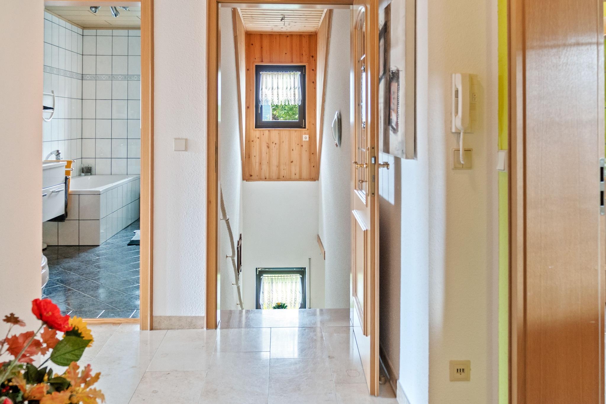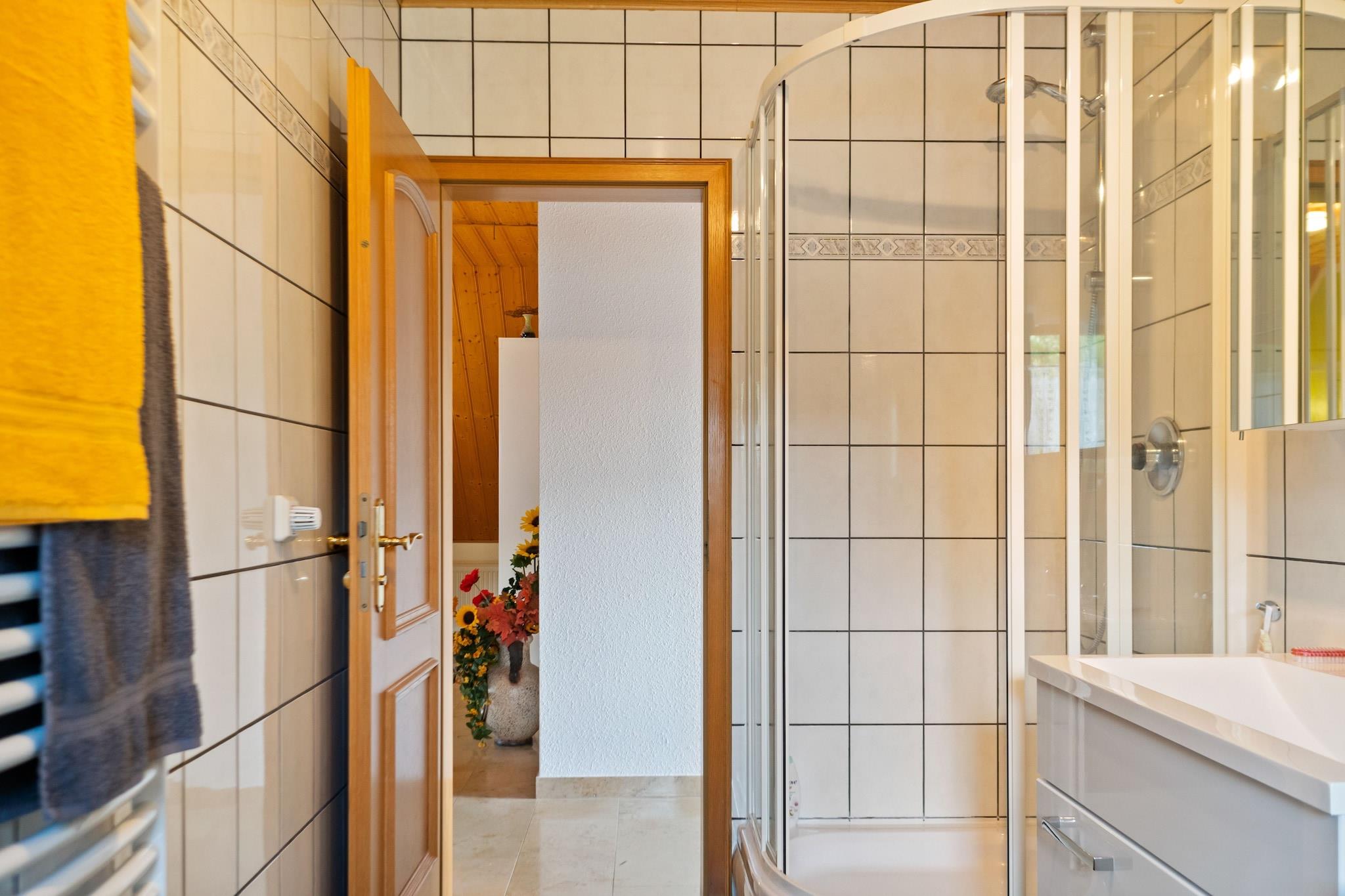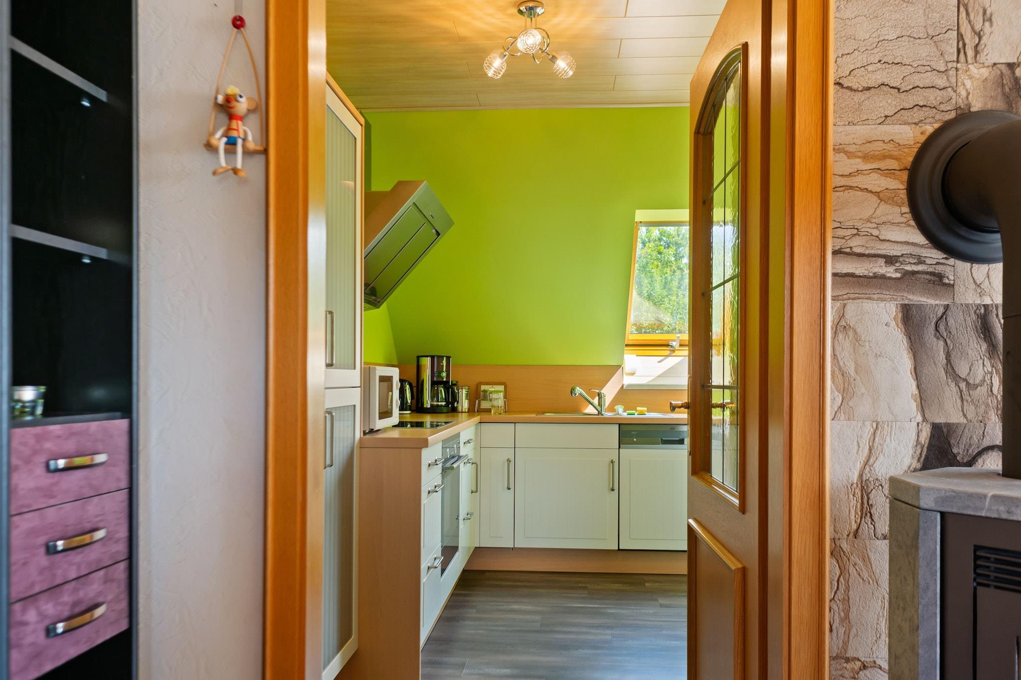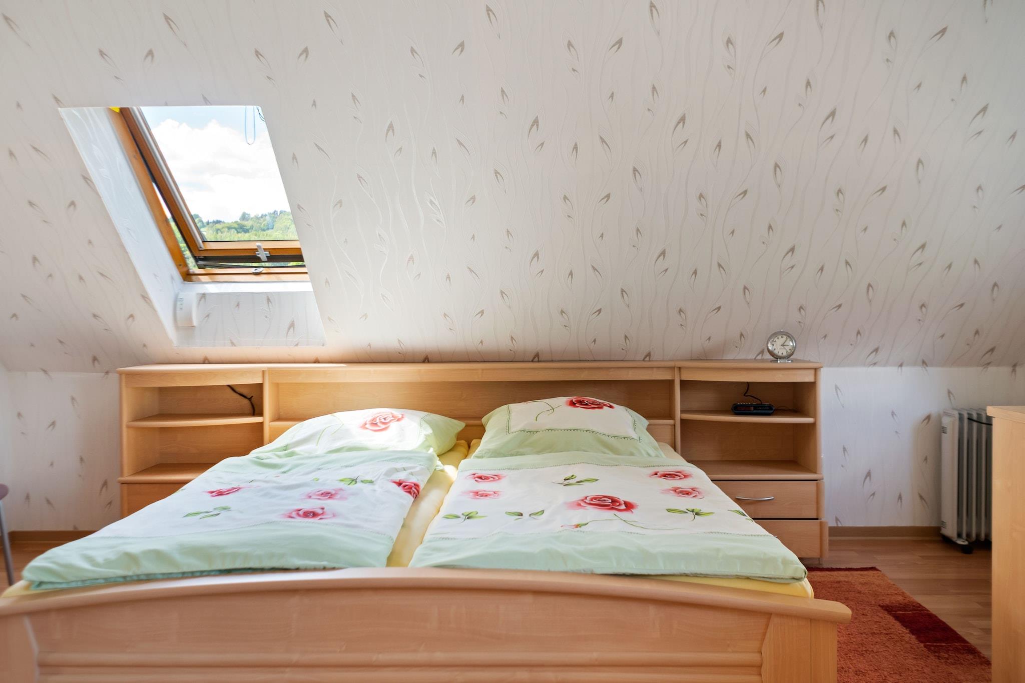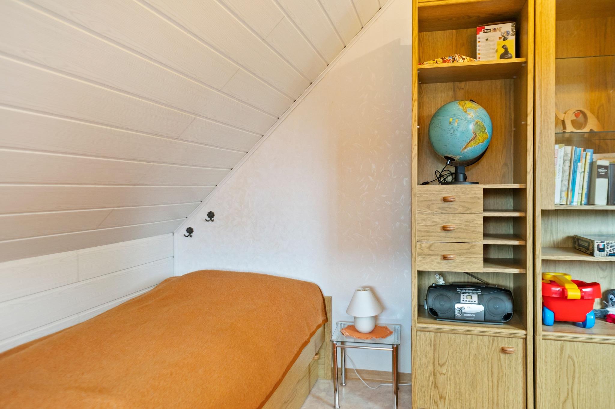 Beliggende på loftet i et fredeligt hjem, blander denne hyggelige lejlighed rustik charme med moderne bekvemmelighed. Det varme opholdsrum har pejs, satellit-tv med hollandske kanaler, dvd-afspiller og radio, ideel til afslappede aftener. Et kompakt, men veludstyret køkken omfatter keramisk kogeplade, ovn, mikroovn, køleskab med fryser, opvaskemaskine og filterkaffemaskine. Sovearrangementerne er bekvemt spredt mellem et enkelt- og dobbeltværelse, og badeværelset byder på både badekar og bruser samt hårtørrer og toilet. Den fælles indhegnede have (1.600 m²) byder på familievenlig sjov med trampolin, legeredskaber, festspil, dart, legetøj og liggestole. Der er også en privat terrasse på 6 m² og en balkon til rolig afslapning med parkering, carport, cykelopbevaring, tørretumbler (delt) og grillmuligheder til rådighed efter anmodning. Gasvarme og insektnet sikrer komfort året rundt, mens ekstraudstyr som strygeudstyr, børneseng og kravlegård gør det nemt for længere ophold. Beliggende kun 500 m fra byens centrum og skilifter, og mindre end 350 m fra butikker, bageri og offentlig transport. Med skovvandringer (750 m), swimmingpools, skiløb og langrendsløjper i nærheden, er det en fantastisk base for naturskønne ferier eller udendørs familieferier