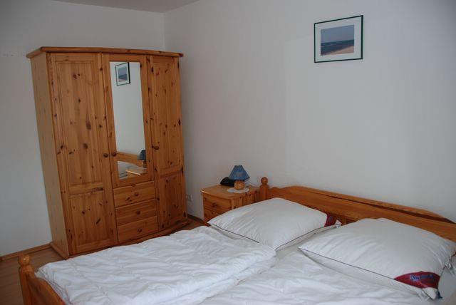 Im separaten Schlafzimmer befindet sich ein Doppelbett und ein Kleiderschrank für Ihre Garderobe. Zwei weitere Personen schlafen auf dem Schlafsofa im Wohnzimmer.