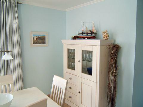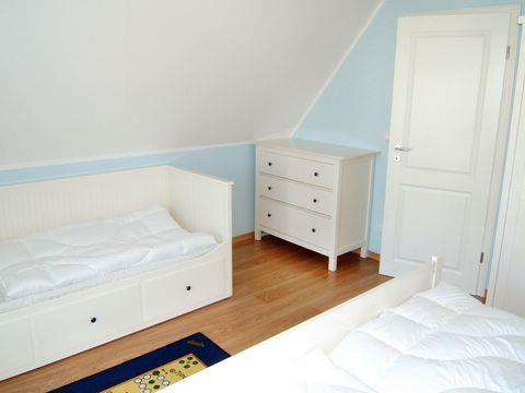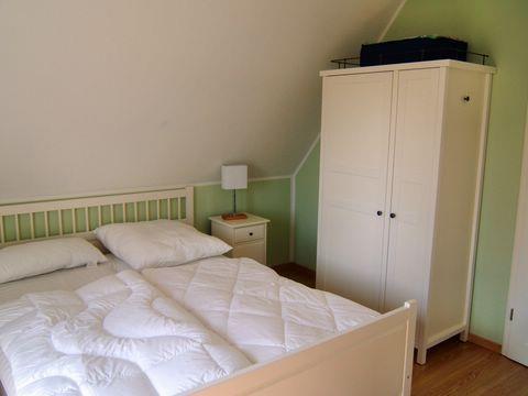 Zwei separate Schlafzimmer, jeweils mit einem Doppelbett und Stauraum für Ihre Garderobe, sorgen für entspannte Nächte. In einem Schlafzimmer steht ein zusätzliches Einzelbett zu Ihrer Verfügung. Eine weitere Person findet einen komfortablen Schlafplatz auf der Schlafcouch im Wohnzimmer.