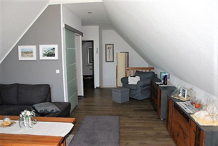Der helle Wohn- und Essbereich ist stilvoll mit einer komfortablen Sofaecke mit TV-Gerät, Wlan und einem Esstisch möbliert. Die Küche ist ebenfalls in den Raum integriert und bietet viele technische Geräte für eine entspannte Selbstversorgung. Dazu gehören z.B. ein Kühlschrank mit Gefrierfach, ein Herd mit Backofen, Geschirrspülmaschine, Wasserkocher, Kaffeemaschine und vieles mehr.
