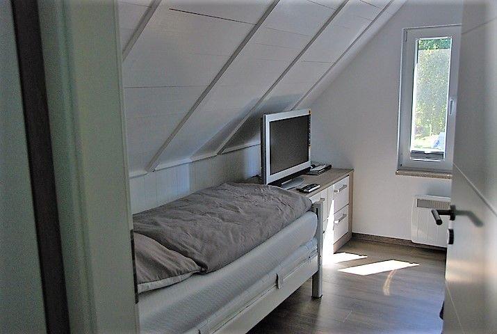 Im zweiten separaten Schlafzimmer befindet sich ein kleines Doppelbett, ein Einzelbett und ein weiteres TV-Gerät. Das zusätzliche Gäste-WC runden die Ausstattung des Hauses ab.