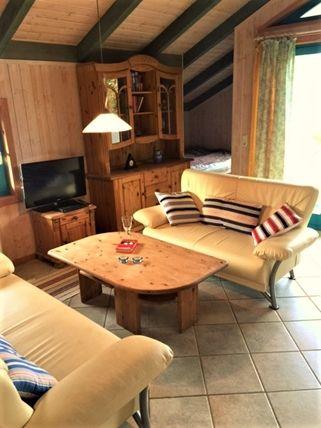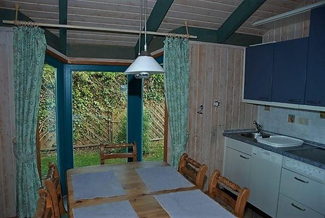 Ein kombinierter und offen gestalteter Wohn- und Essbereich mit integrierter Küche laden zu geselligen Stunden mit der Familie ein. Sie verfügen über eine gemütliche Sofaecke mit TV-Gerät und einen Esstisch mit Stühlen. Außerdem befindet sich hier der Zugang zu der möblierten und überdachten Terrasse. Die integrierte Küche ist mit einem Kühlschrank mit Gefrierfach, einem Herd, einer Geschirrspülmaschine, Wasserkocher und Kaffeemaschine ausgestattet und bietet Ihnen gute Möglichkeiten, sich bei Bedarf selbst zu versorgen.