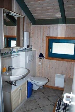 Zwei weitere separate Schlafzimmer sind entweder mit einem kleinen Doppelbett (durchgehende Matratze) oder mit einem Etagenbett und jeweils einem Kleiderschrank möbliert.