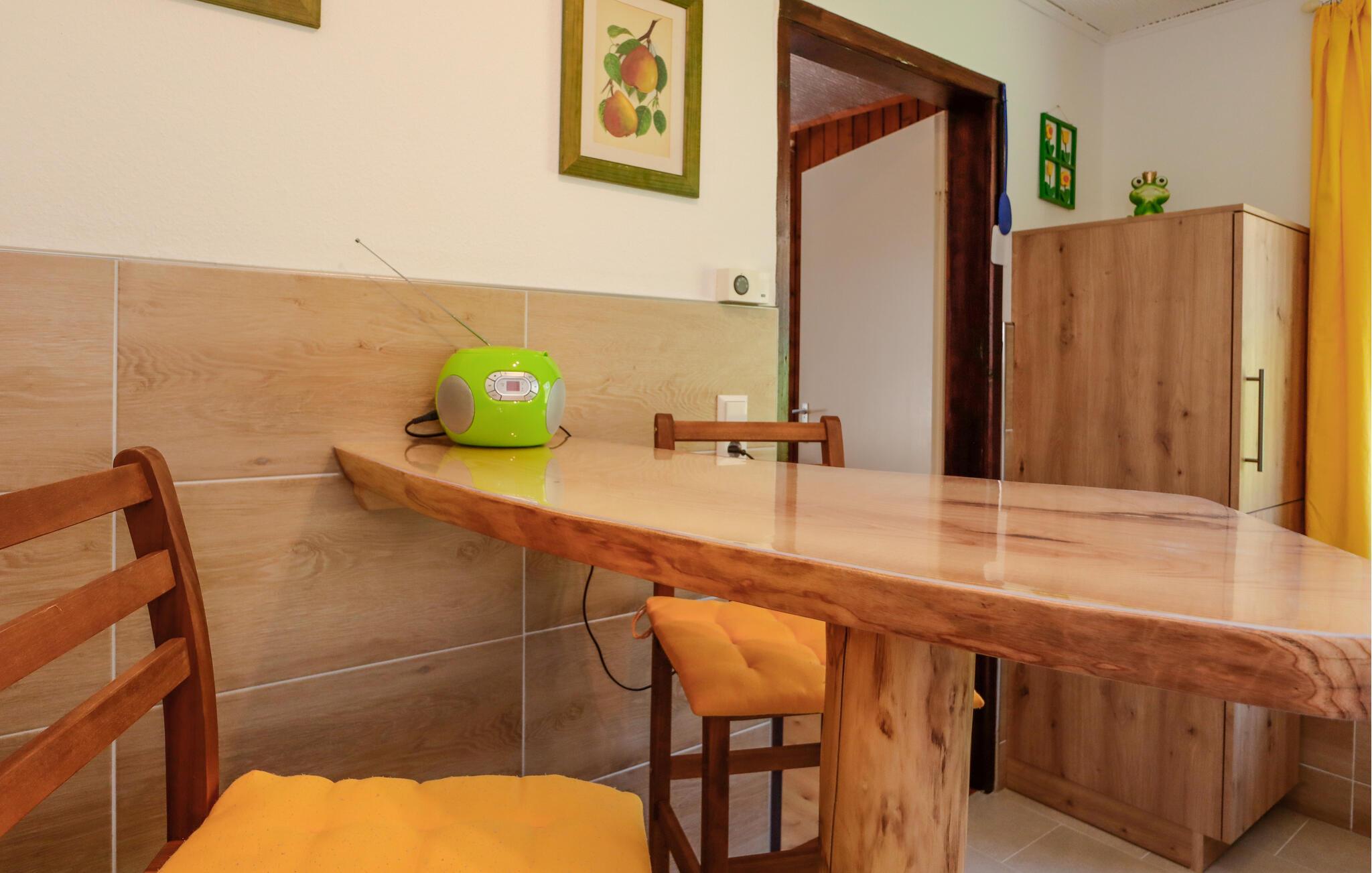 Dette feriehus strækker sig over to etager, har velplejede møbler og en udsigt til det bakkede landskab samt de typiske bondegårde for Hochschwarzwald. Huset ligger midt i de grønne omgivelser ved en bæk, og er omgivet af marker til køerne, der fredeligt græsser rundt. Her er ægte, landlig idyl.