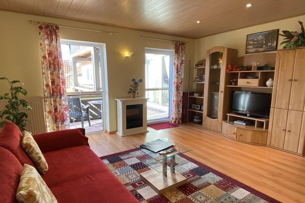 På 1. etage: (Stue(, , Fjernsyn, DVD-afspiller, radio), Køkken(, , tekøkken, spisebord, kakkelovn, kogeplade, elkedel, brødrister, komfur, kaffemaskine, ovn, mikrobølgeovn, opvaskemaskine , køleskab, fryser, insektnet), soveværelse(, , , dobbeltseng), badeværelse(, toilet, bruser, håndvask, føntørrer)) , , , Internetadgang, Førstehjælp, varme, have(, Græsplæne, havemøbler, solstole), parkering, strygebræt, strygejern, telefon