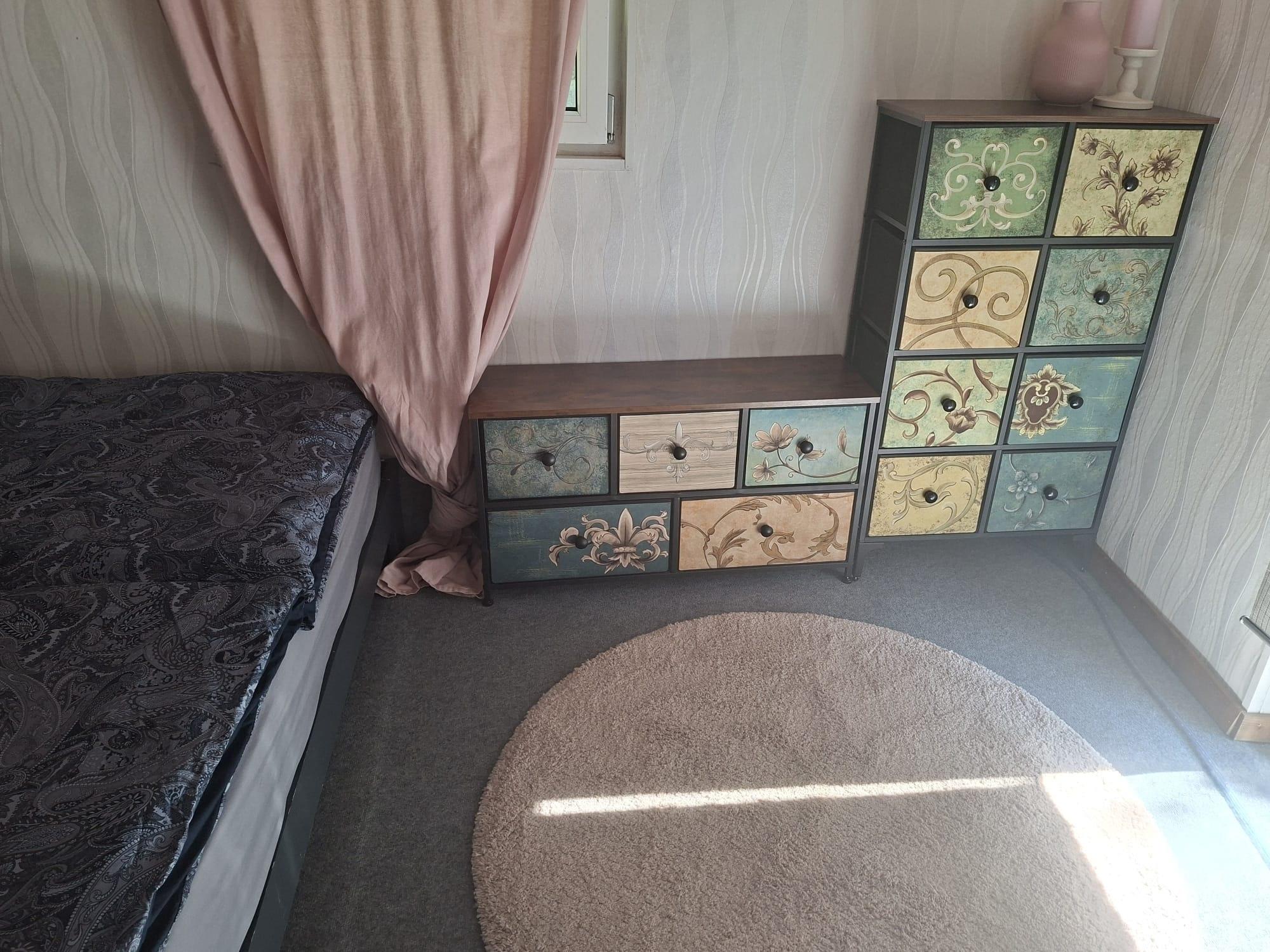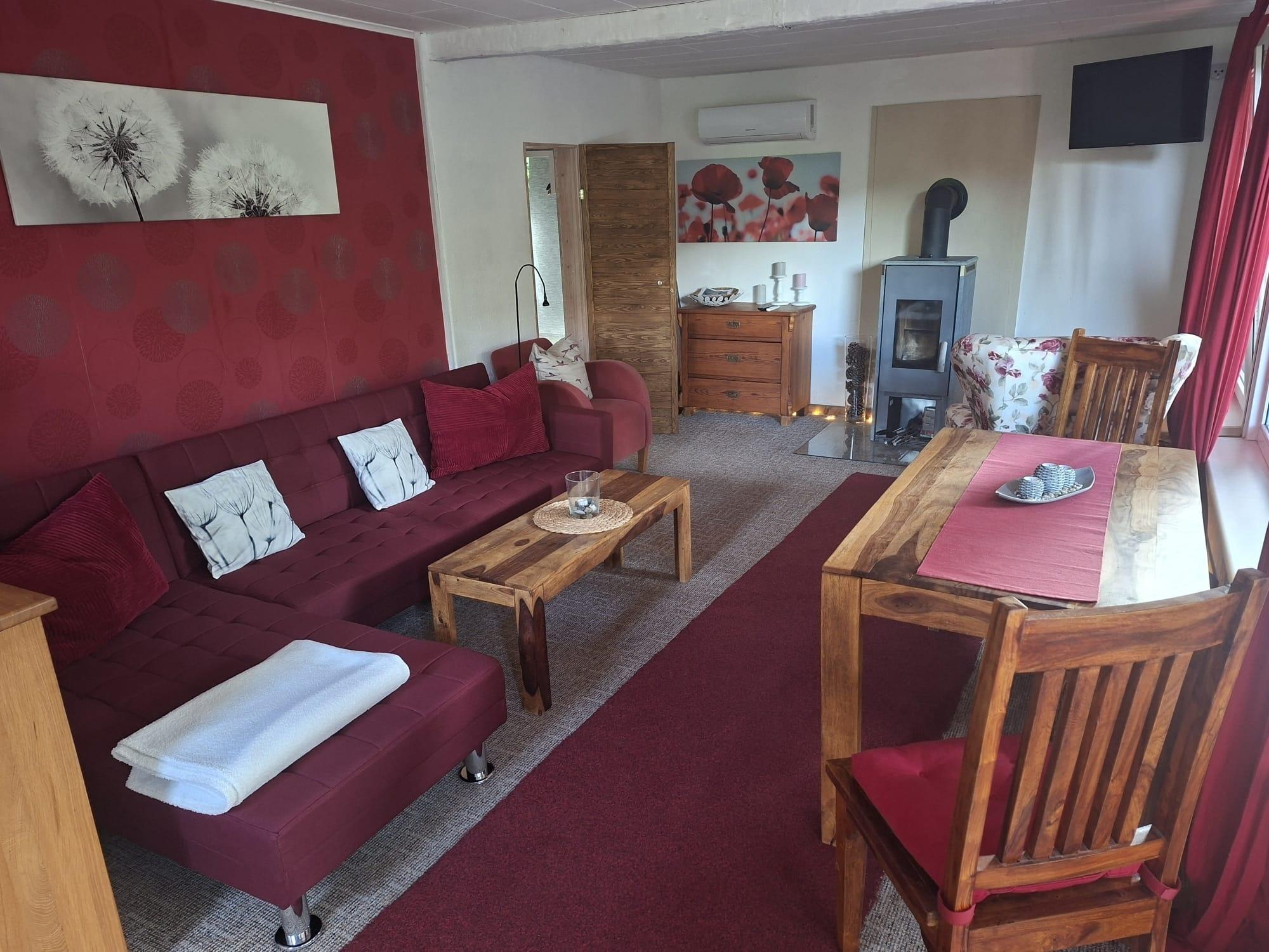 Es ist ausgestattet mit WLAN, Sat-TV, Amazon Prime, Soundbar, 1 x 2 und 1 x 1 Schlafplätze (Schlafzimmer mit Doppelbett (1,80 m x 2,00 m) und Schlafcouch im Wohnzimmer)
