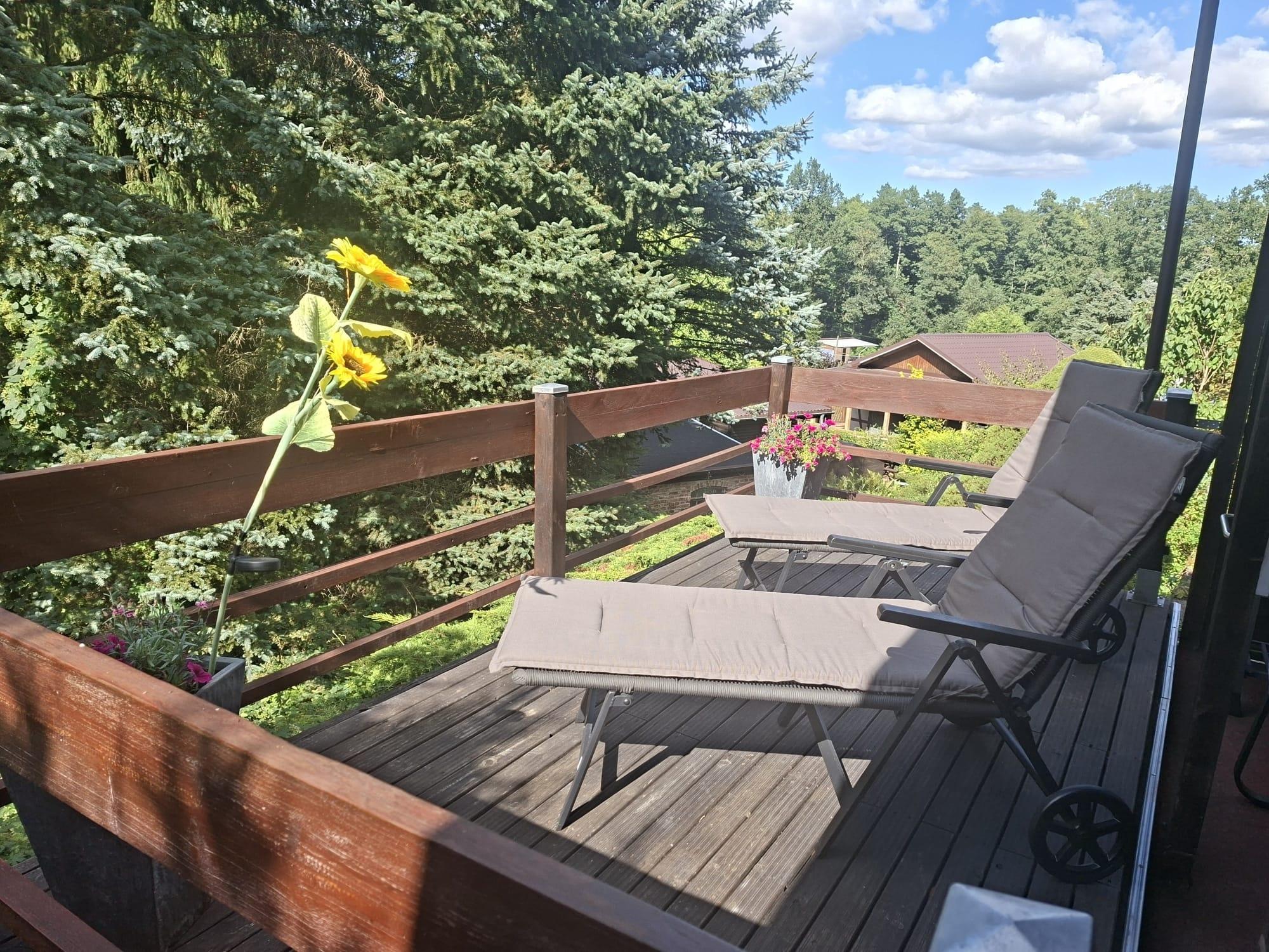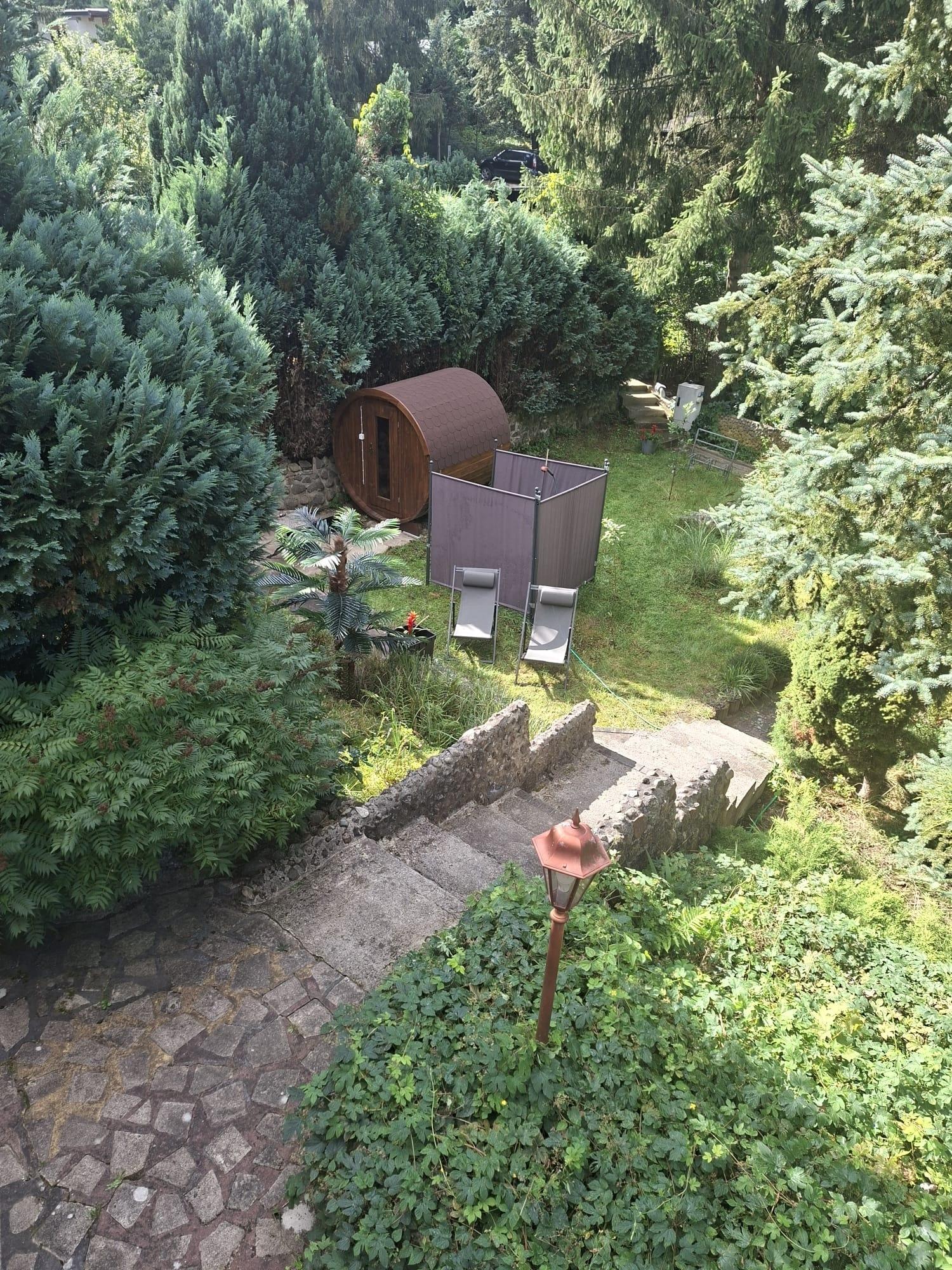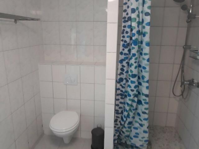 Bad mit Dusche und 2 separaten WCs. Eines davon im oberen Bereich mit Dusche und WC für das kleine Geschäft. Alles andere ungestört im WC im Souterrain des Hauses, welches über die Terrasse und Treppe hinunter erreichbar ist.