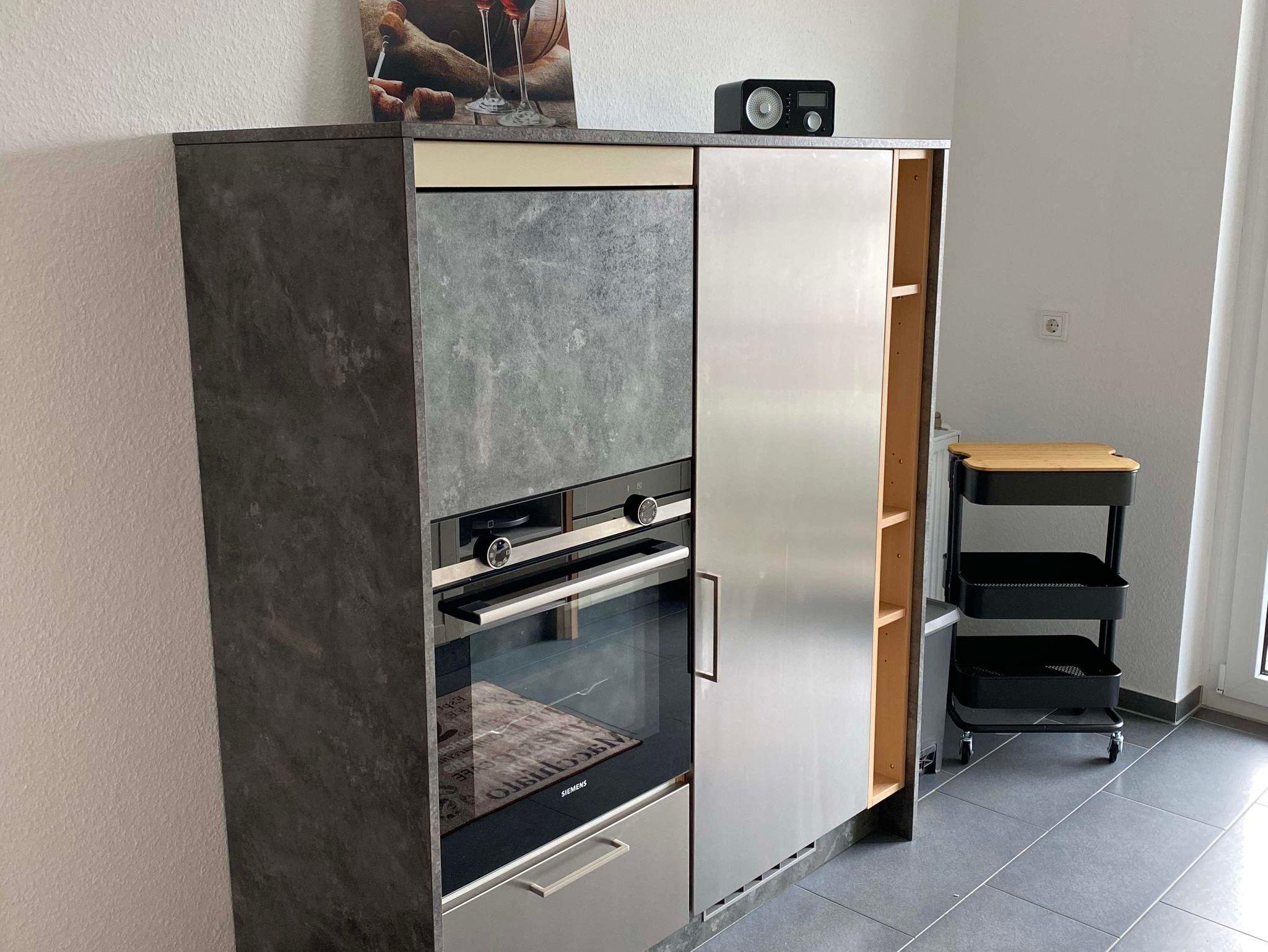 Die Küche ist voll ausgestattet mit Herd, Backofen, Mikrowelle, Kühlschrank, Spülmaschine, Filter-Kaffeemaschine, Wasserkocher, Toaster, Geschirrtücher und Zugang zum Außenbereich.