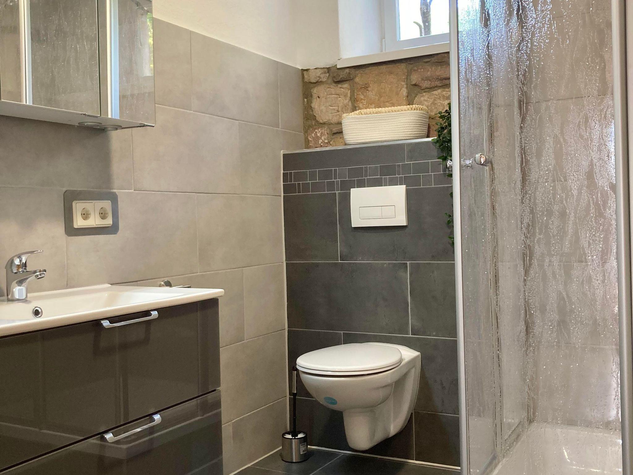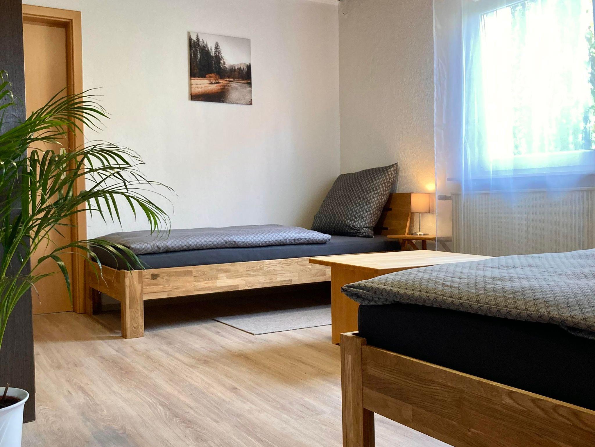 Die frisch renovierte Unterkunft verfügt im Erdgeschoss über eine vollausgestattete offene Küche, einen gemütlichen Wohnbereich mit Fernsehgerät und ein Badezimmer. Im ersten Stock befinden sich ein Doppelbettzimmer mit Balkon, zwei Zweibettzimmer, ein Einzelzimmer und ein weiteres Badezimmer. Das Doppelbettzimmer verfügt zudem über einen kleinen Nebenraum, der ein Beistellbett für Kleinkinder, eine Couch und ein weiteres Fernsehgerät beinhaltet. Außerdem stehen Ihnen WLan und eine Waschmachine zur Verfügung. Stellplätze für Autos und Fahrräder sind ebenfalls vorhanden.