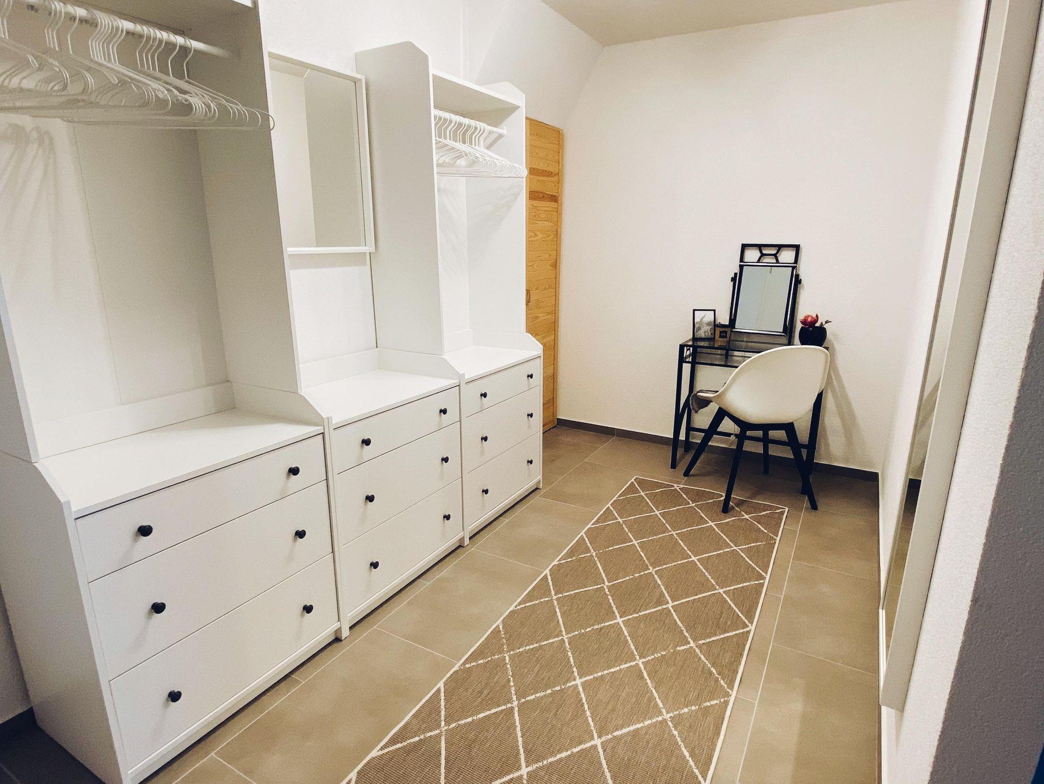Die Ferienwohnung verfügt über ca. 55 m² Wohnfläche und ist mit einem Badezimmer, einer Küche mit Essbereich, einem Schlafzimmer mit Ankleidezimmer und einem Wohnzimmer mit einer Schlafcouch ausgestattet.