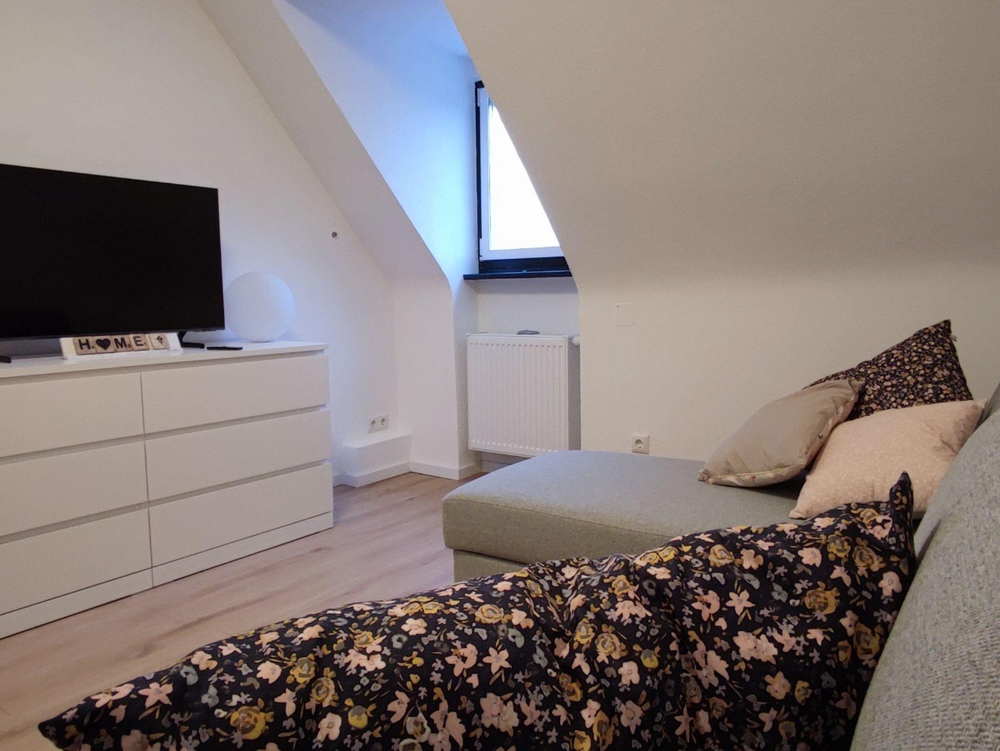Im gemütlichen Wohnzimmer finden Sie ein Schlafsofa, ideal für einen weiteren Gast, sowie einen Flachbild-TV, der zum Entspannen einlädt.