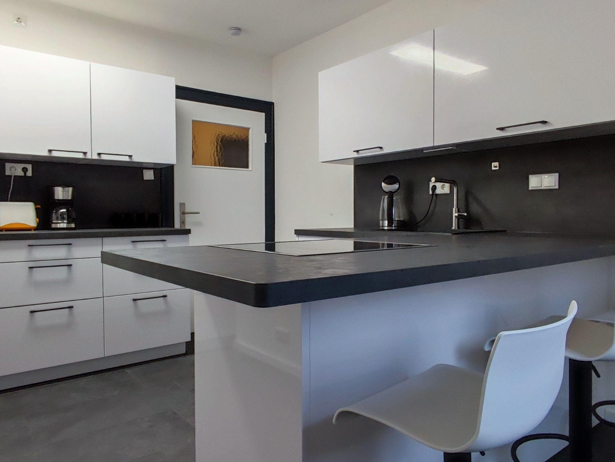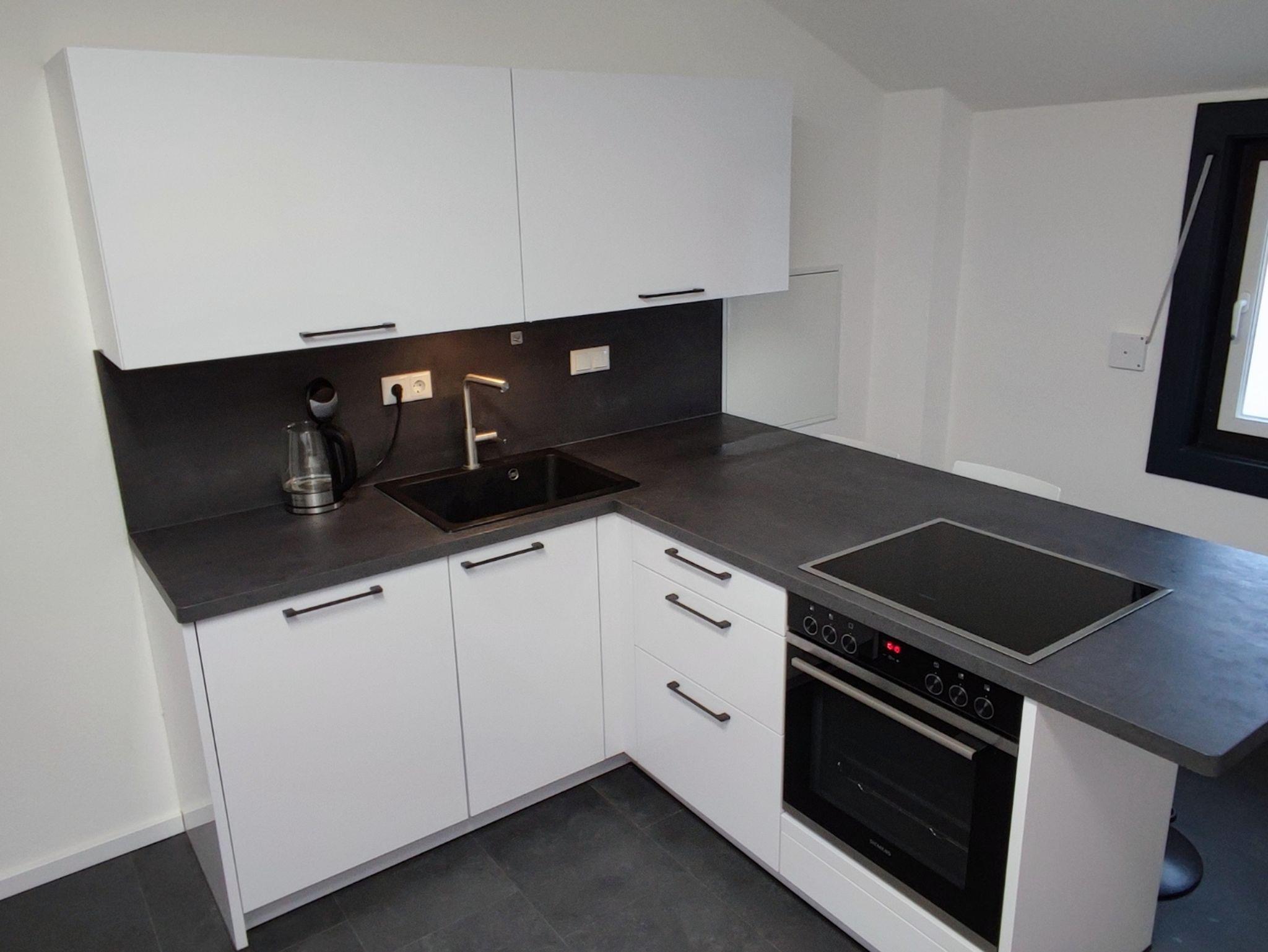 Das angrenzende Esszimmer mit einer bequemen Couch bietet den perfekten Raum für gesellige Abende. Die voll ausgestattete Küche lässt keine Wünsche offen und verfügt über einen Induktionsherd, Geschirrspüler, Kühlschrank mit Gefrierfach, Wasserkocher, Toaster sowie eine Kaffeemaschine – alles, was Sie für die Zubereitung von Mahlzeiten benötigen.