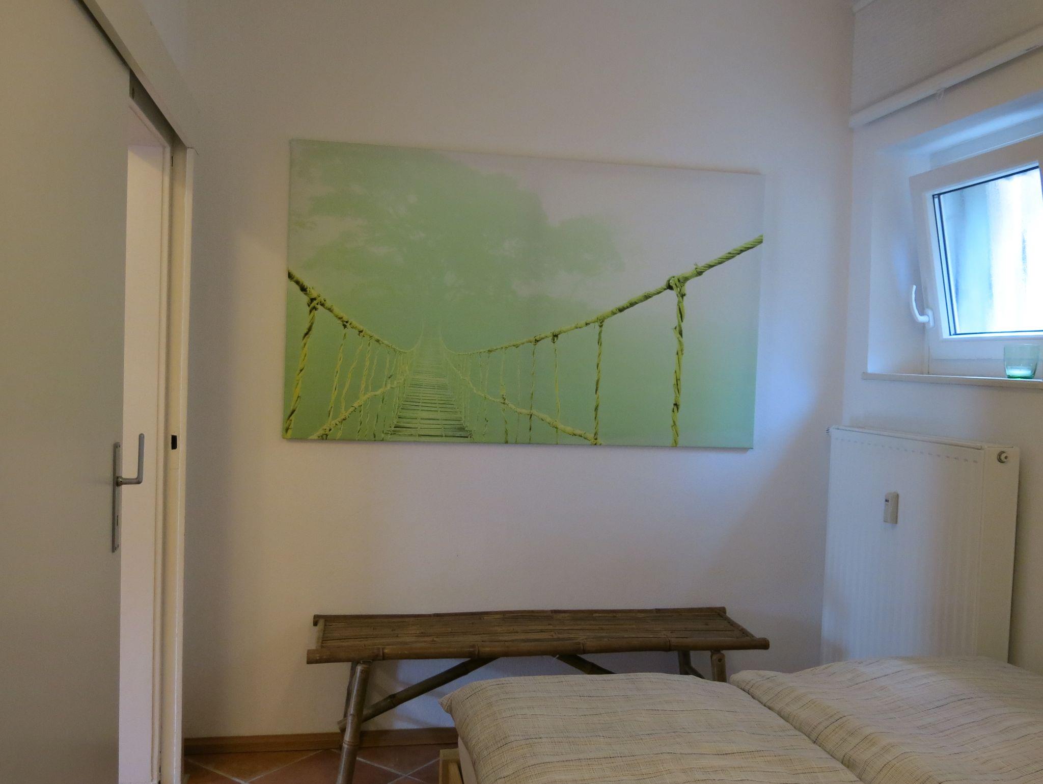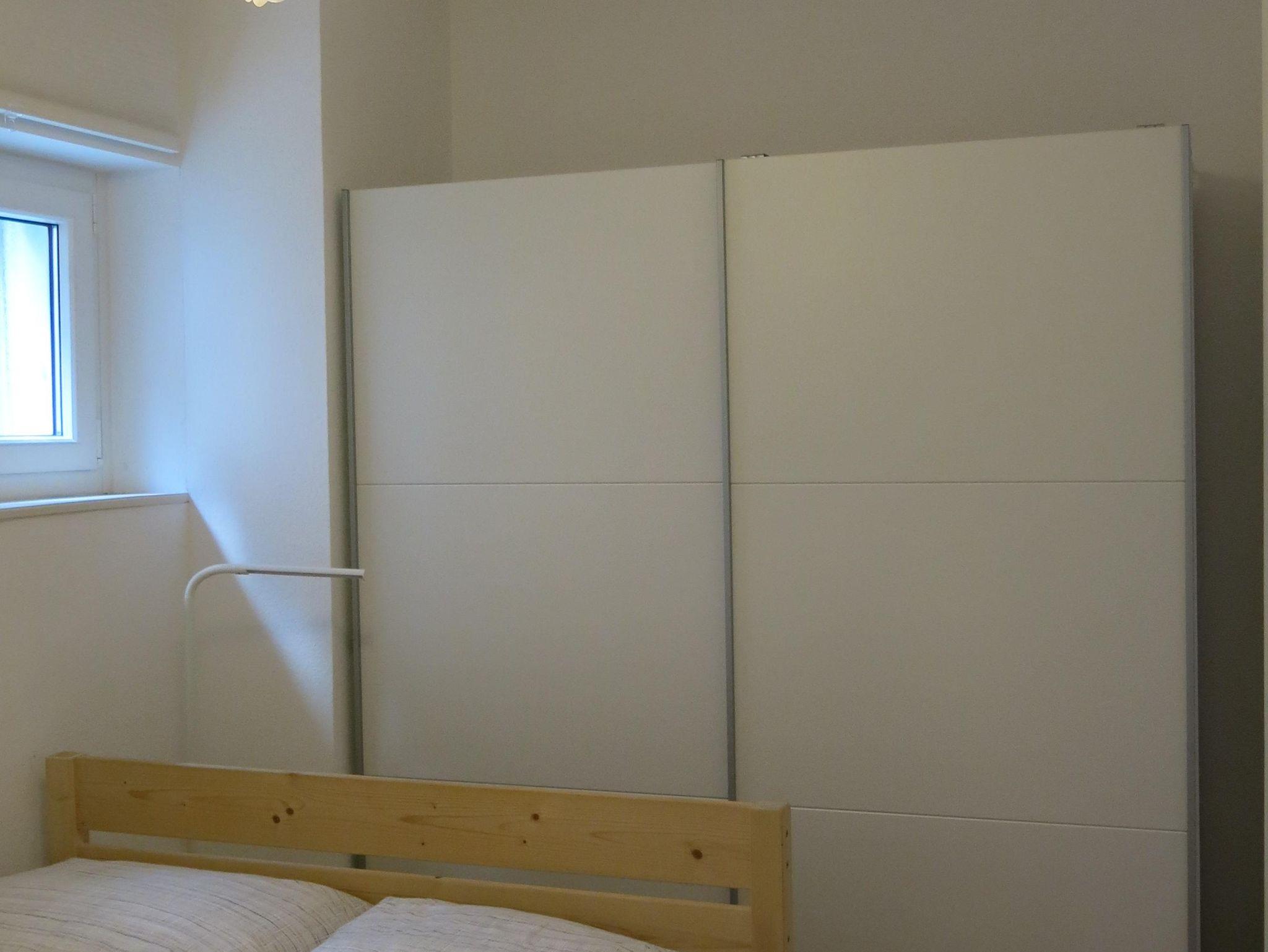 _ Doppelbett 1,40-2,00m, Bettwäsche, Fliegengitter an den Fenstern des Schlafzimmers.