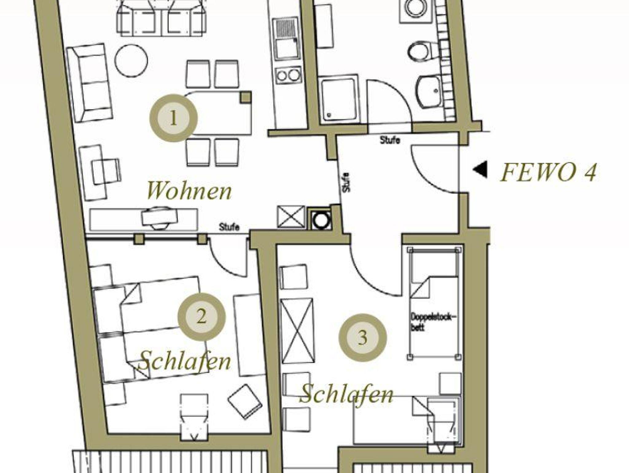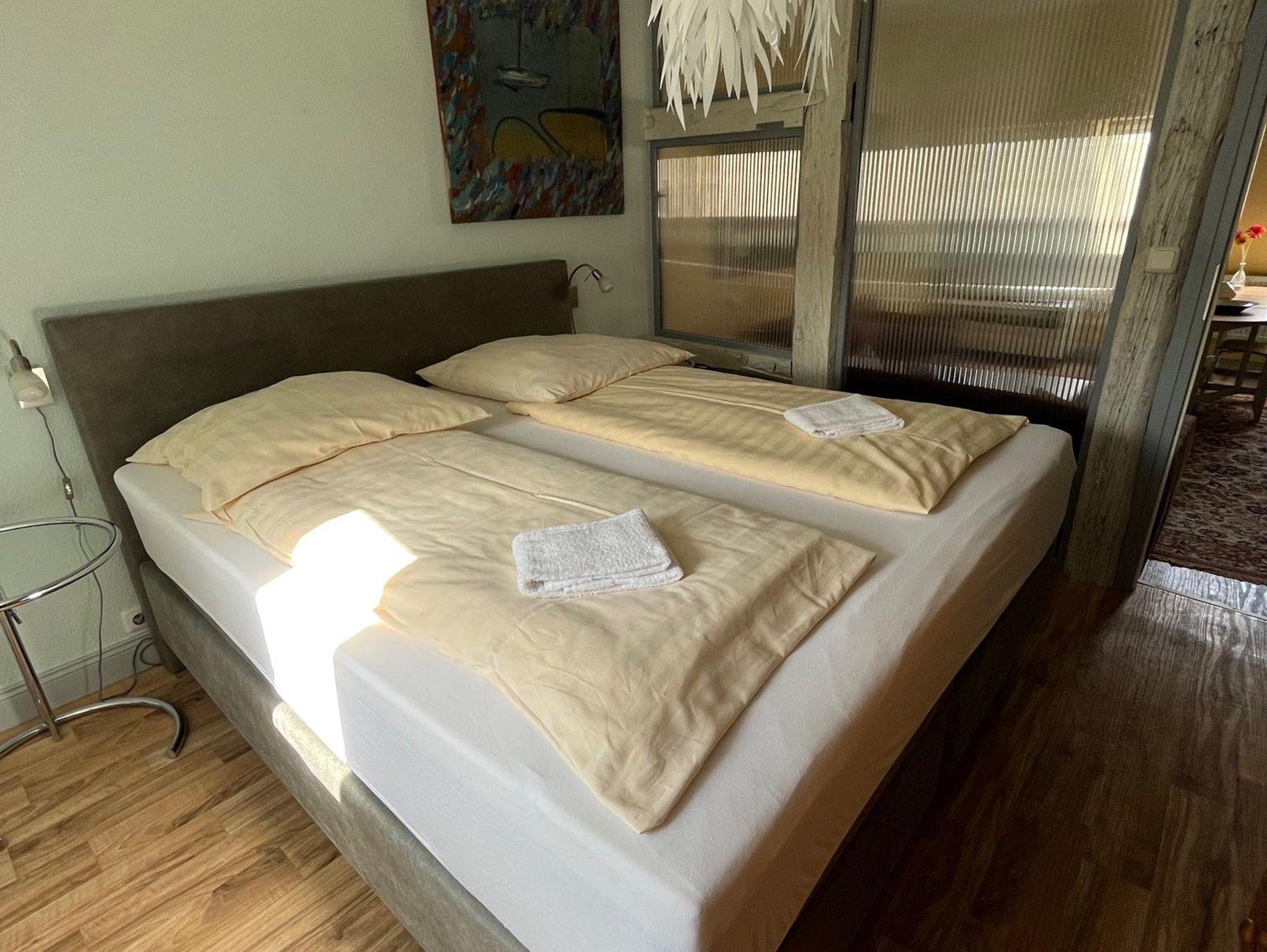 WICHTIG bei Fewo 02: Der Schlaf- und Wohnbereich wird durch einen Balken getrennt, den man übersteigen muss, deshalb nicht für ältere oder gehbehinderte Gäste geeignet.
