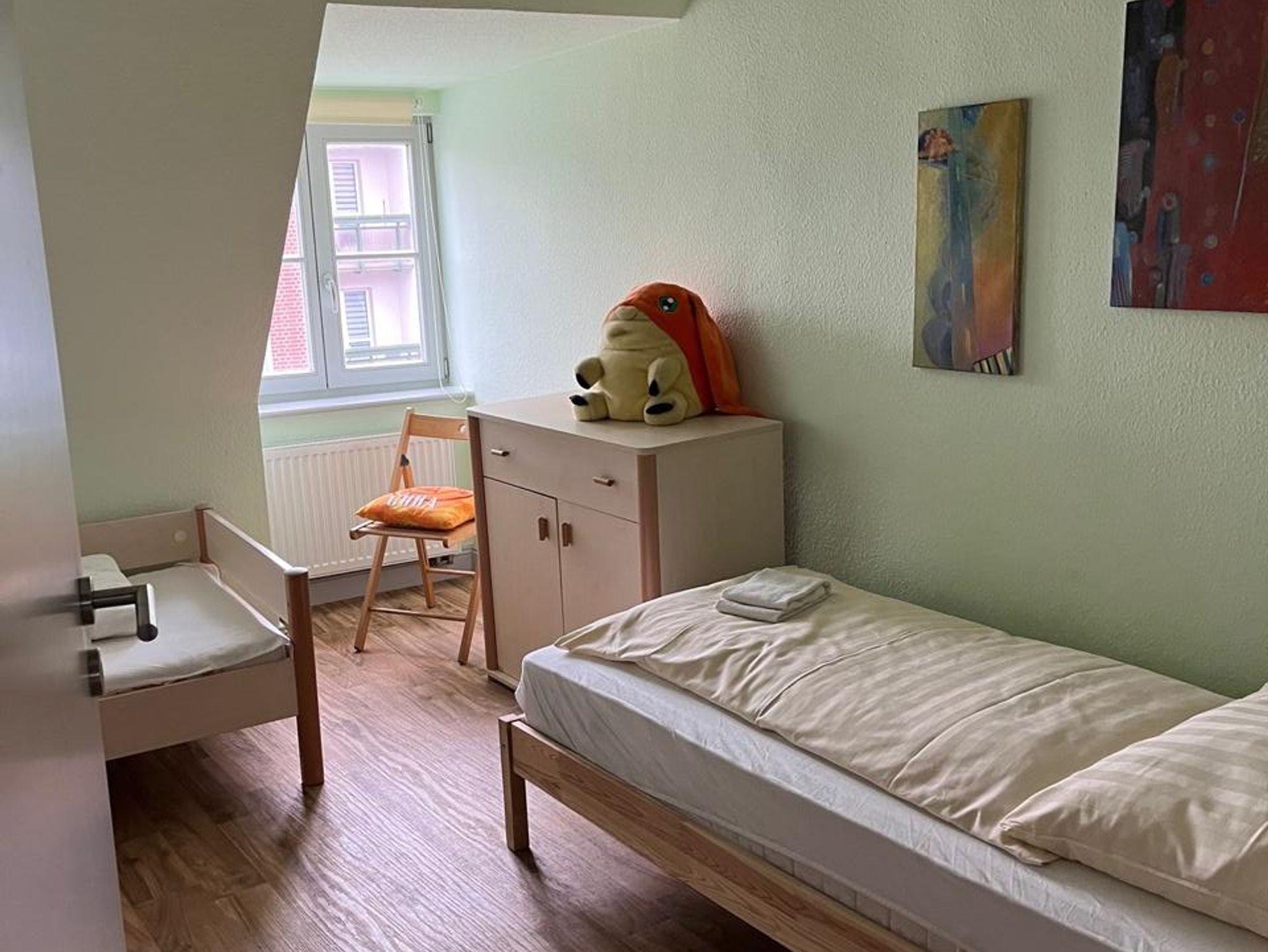 Pluspunkt :ein Kinderbett wird gestellt.