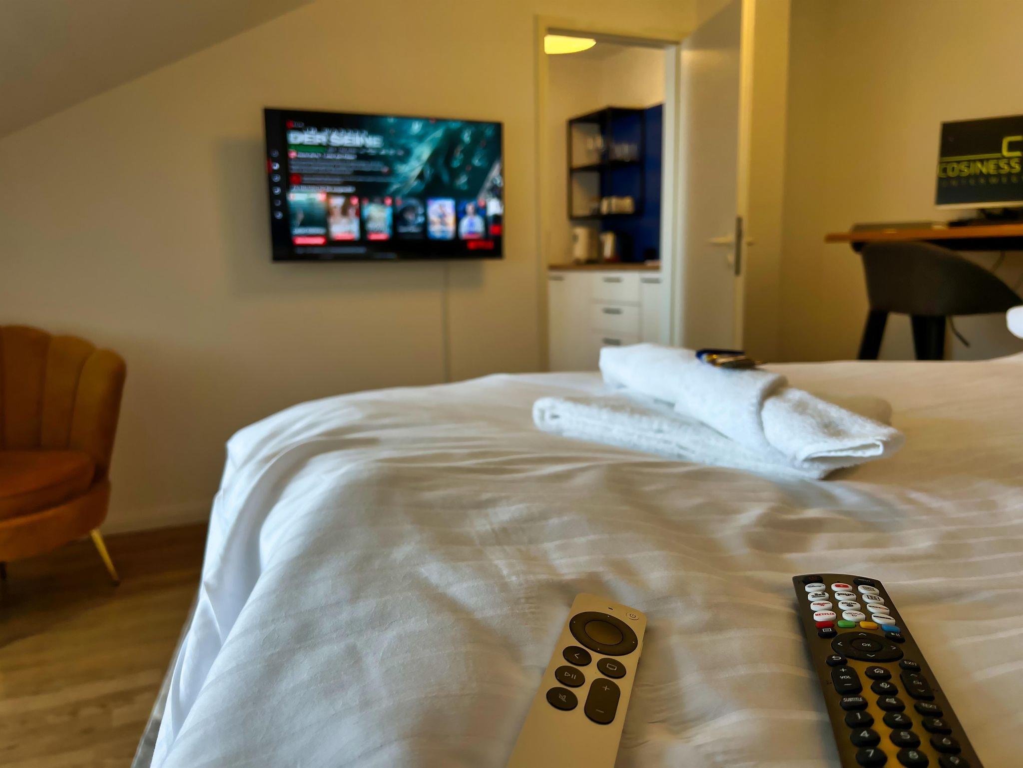 Wir stellen hochwertige Bettwäsche und Handtücher zur Verfügung. Außerdem erwartet dich ein Begrüßungsset mit Kaffee und Tee sowie ein kleines Pflegekit.