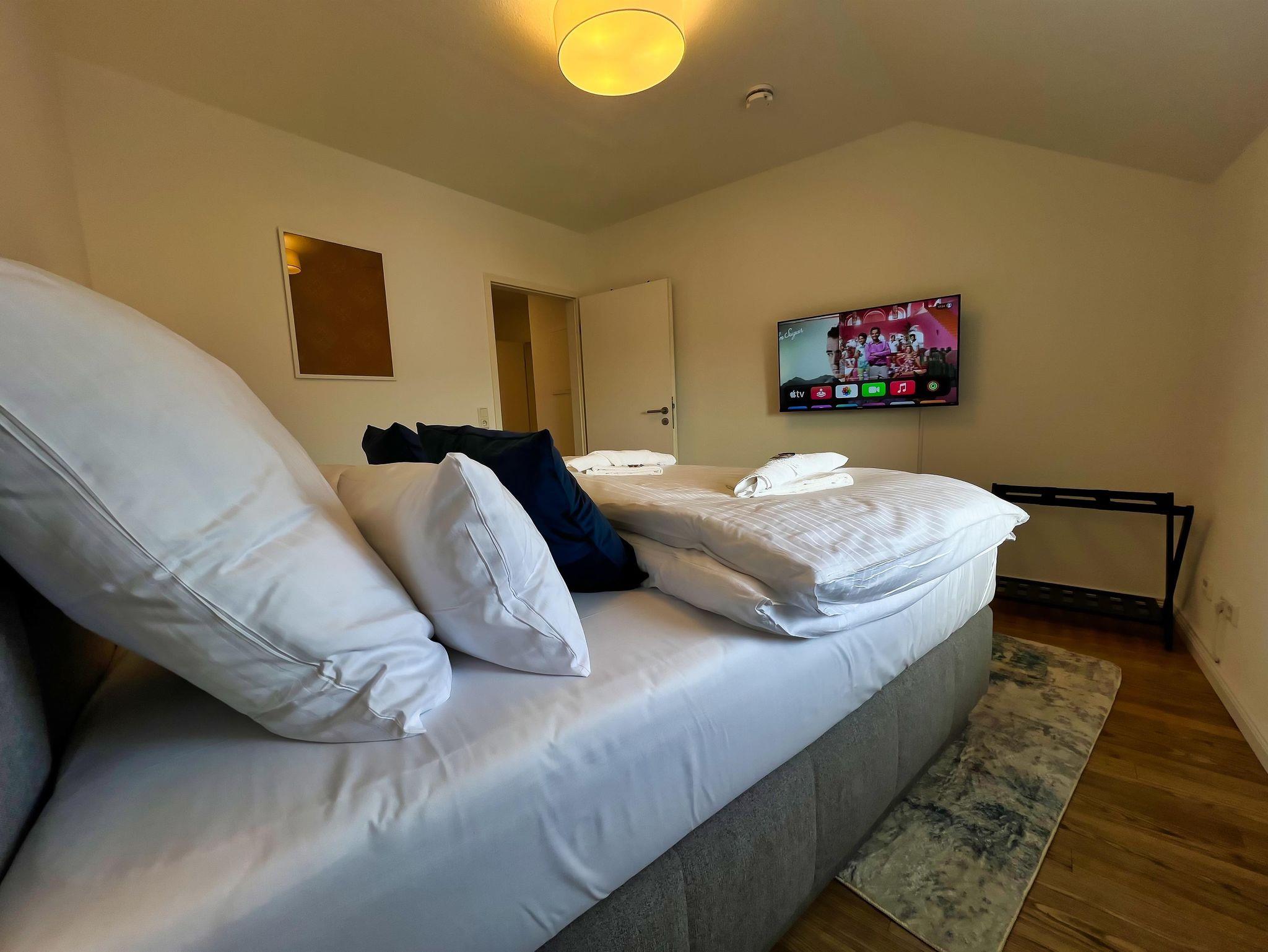 Diese helle und modern eingerichtete Wohnung im 4. Obergeschoss bietet auf 56 m² alles, was du für einen komfortablen Aufenthalt brauchst – inklusive eines voll ausgestatteten Arbeitsplatzes mit USB-C-Dockingstation für flexibles Arbeiten.