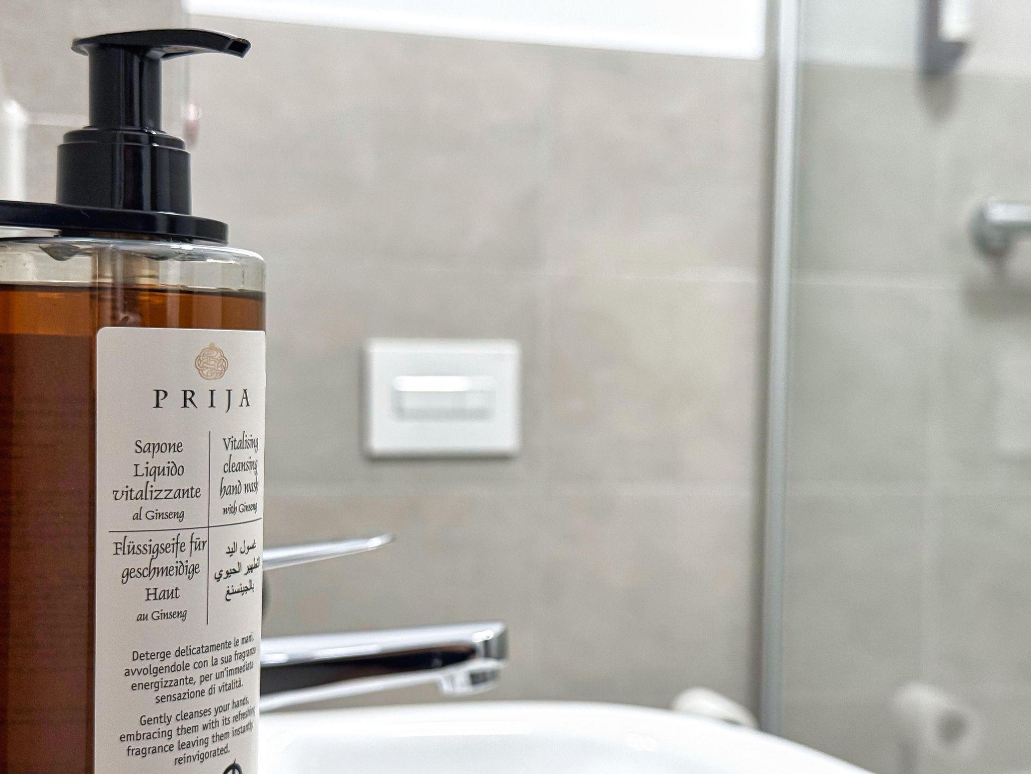 Das neue Badezimmer verfügt über eine komfortable Dusche. Ein Kinderhochstuhl und ein Babyreisebett stehen auf Wunsch bereit.