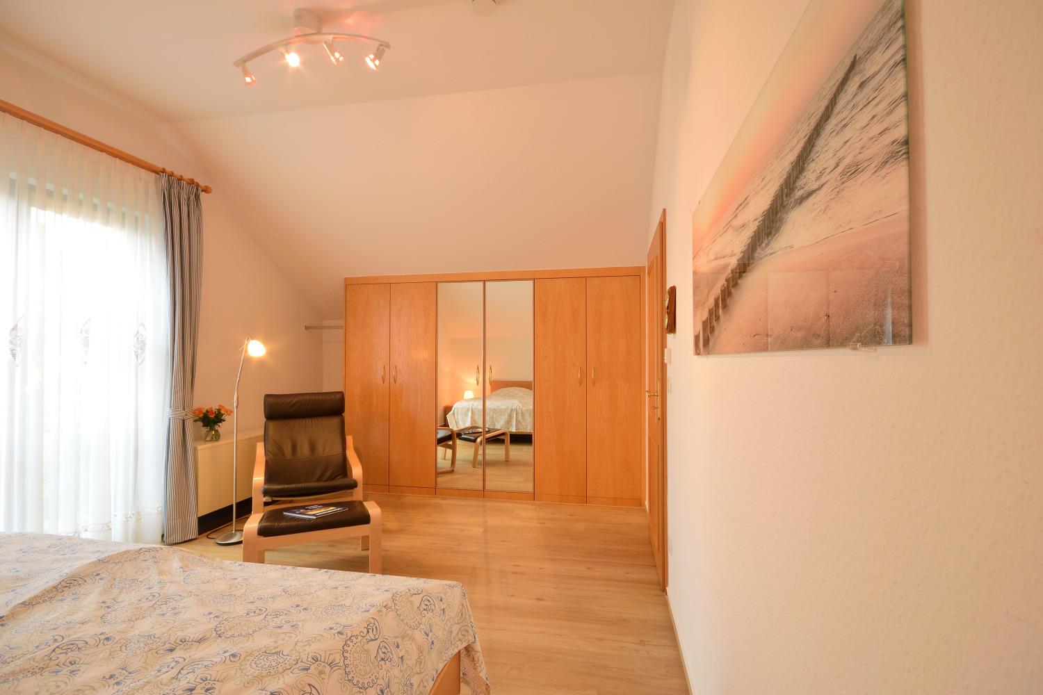 In der großzügig und hochwertig eingerichteten Ferienwohnung, im 1. OG des Hauses finden 2 Personen + Kleinkind ausreichend Platz für einen erholsamen Urlaub. Die Wohnung ist 80 m² groß und teilt sich in Flur, Schlafzimmer, Wohnküche, Bad und Balkon auf. Von der komplett ausgestatteten Wohnküche, mit Sitzbereich, haben Sie durch die große Fensterfront einen herrlichen Blick in den Garten und im Winter sogar zum See. Vom Wohnzimmer gelangen Sie auf den möblierten Balkon. Das Schlafzimmer ist mit einem hochwertigen Doppelbett und Leseecke ausgestattet. Vom Schlafzimmer gelangen Sie auf den kleineren 2. Balkon. Im großen hellen Bad, mit Badewanne, Waschmaschine und Fußbodenheizung, werden Sie sich wohlfühlen.