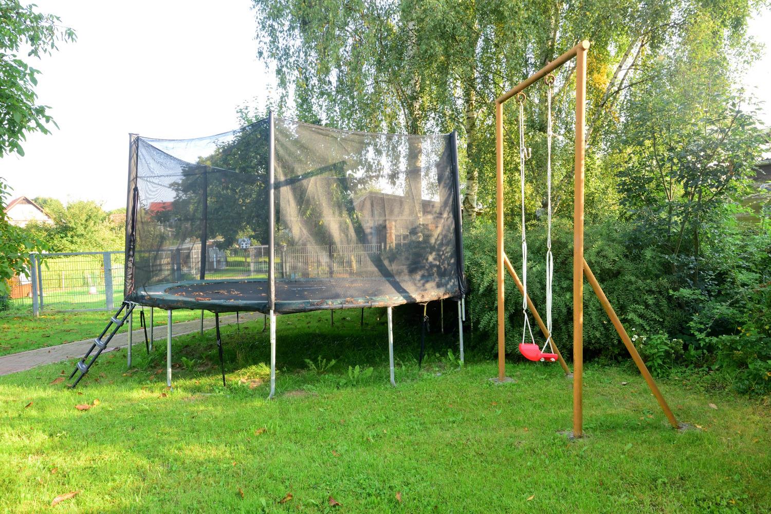 WLAN ist im gesamten Haus vorhanden. Ein Kinderbett und Hochstuhl stellen wir Ihnen gern zur Verfügung. Ihren PKW und Fahrräder können Sie bequem unter dem Carport abstellen. Das Grundstück ist komplett eingezäunt. Eine Wiese, ein Grillplatz mit Grillkamin, eine überdachte Terrasse und ein kleiner Spielplatz mit Trampolin und Schaukel können Sie im Garten nutzen.