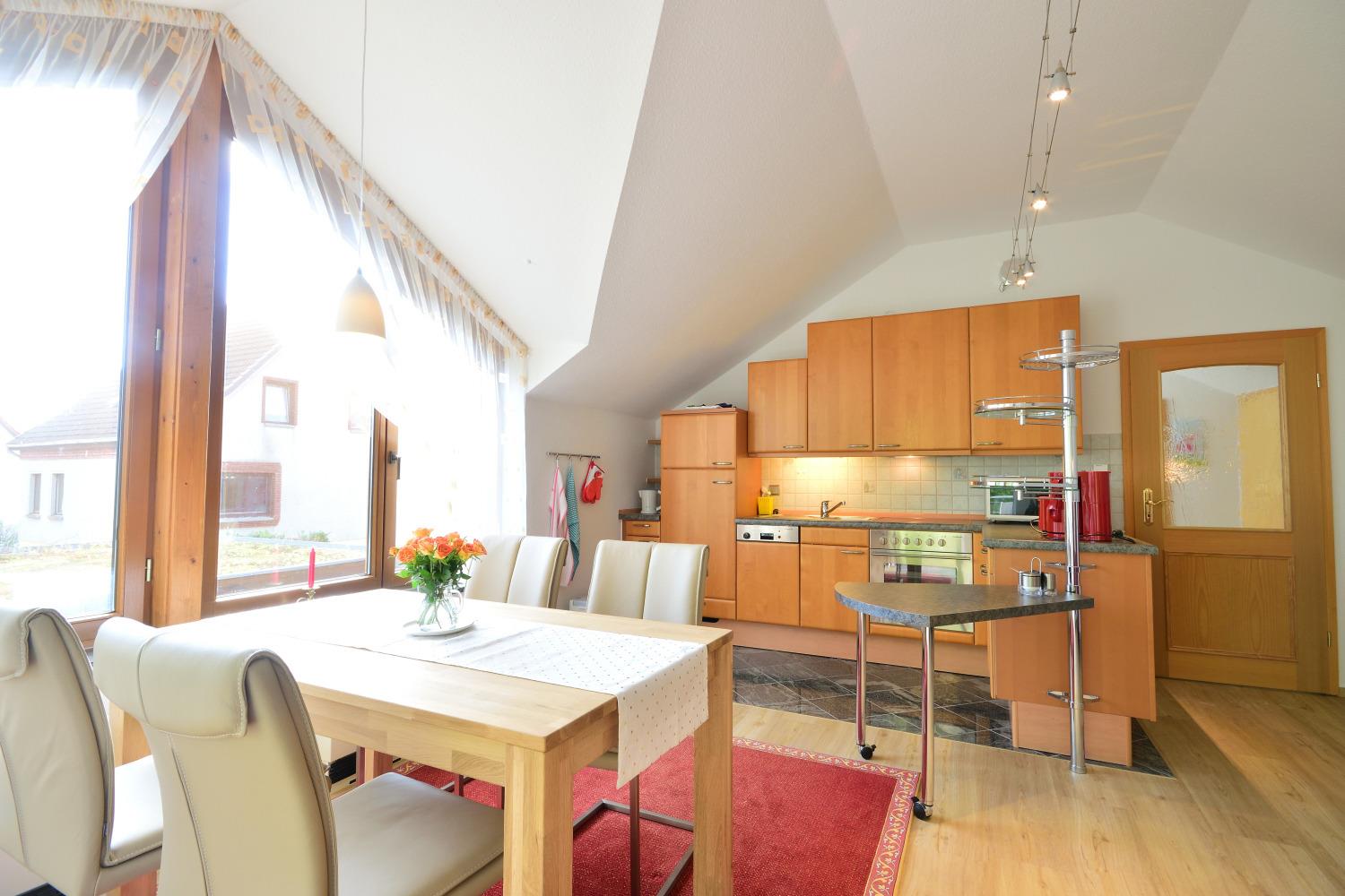 Großzügig und hochwertig eingerichtete Ferienwohnung | WLAN | Badewanne | Spülmaschine | Balkon | Parkplatz Carport | Ruhige Lage | 300 m zur Badestelle und Steg | Fußläufig zu Restaurants
