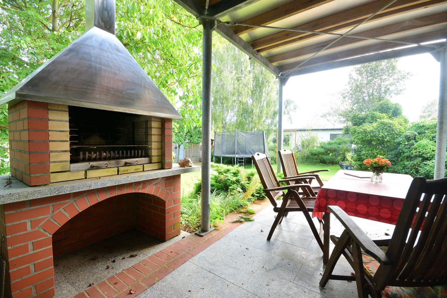 WLAN ist im gesamten Haus vorhanden. Ein Kinderbett und Hochstuhl stellen wir Ihnen gern zur Verfügung. Ihren PKW und Fahrräder können Sie bequem unter dem Carport abstellen. Das Grundstück ist komplett eingezäunt. Eine Wiese, ein Grillplatz mit Grillkamin, eine überdachte Terrasse und ein kleiner Spielplatz mit Trampolin und Schaukel können Sie im Garten nutzen.