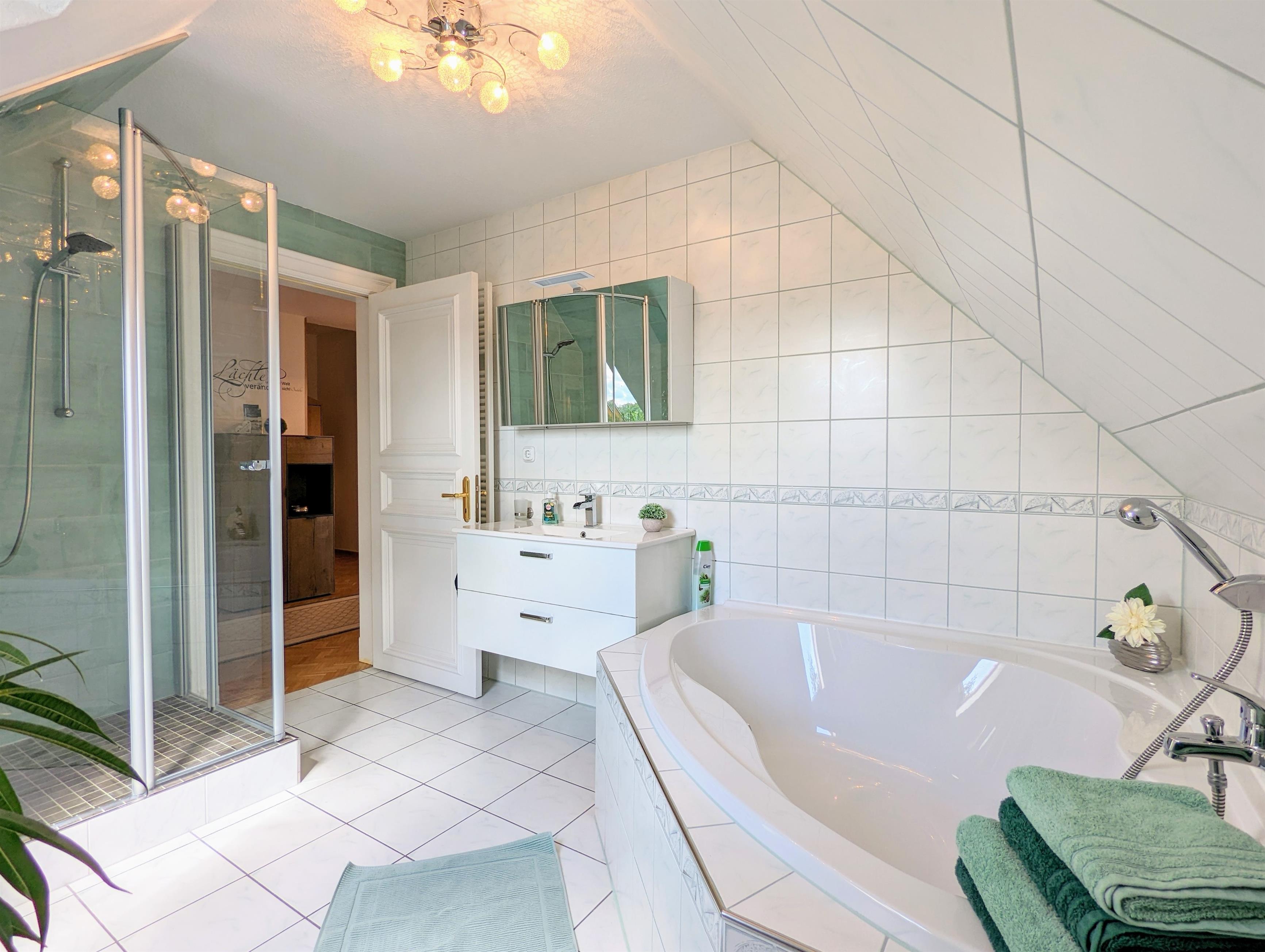 Badeværelse med bruser og badekar