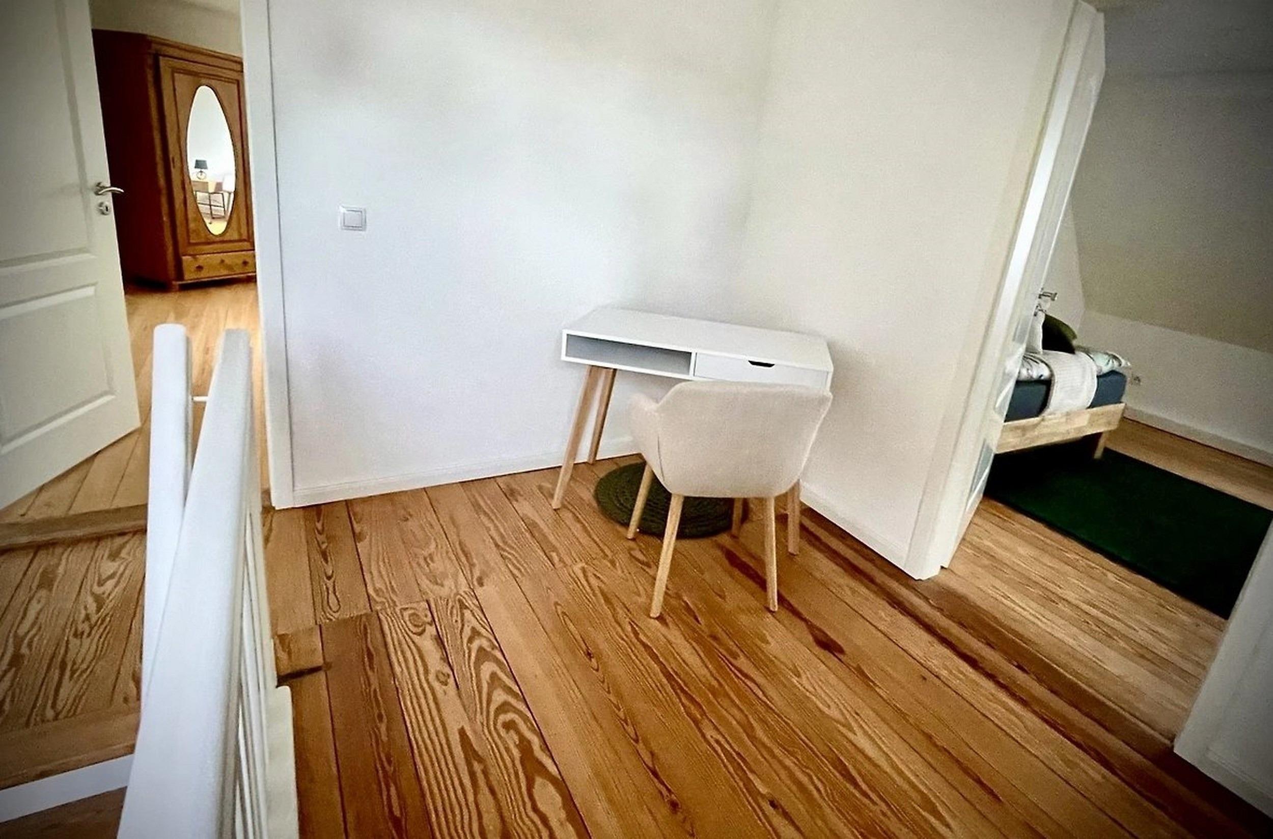 Mit unseren individuell eingerichteten Schlafzimmern im Dachgeschoss bieten wir Ihnen Platz für bis zu 5 Schlafgäste.